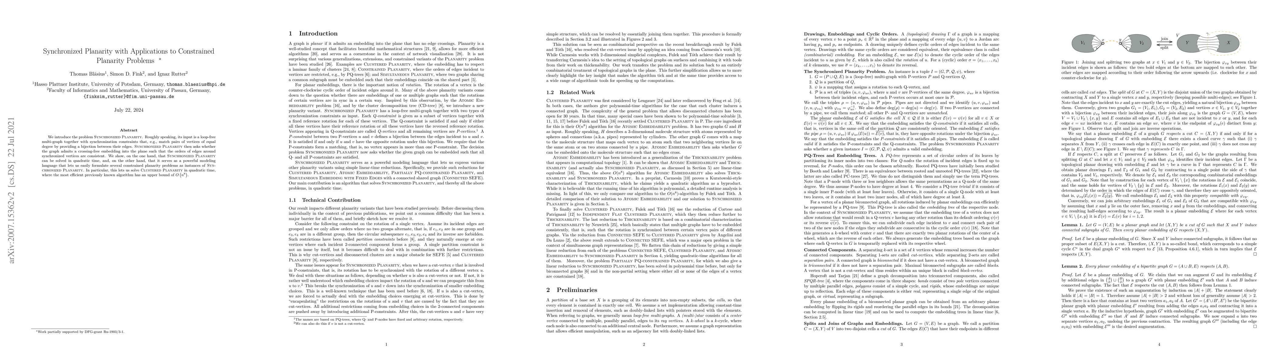 This paper introduces Synchronized Planarity, a problem involving loop-free multi-graphs with synchronization constraints, and demonstrates its quadratic-time solvability. It also shows how Synchronized Planarity can model and solve constrained planarity problems, notably Clustered Planarity, more efficiently than previous methods.