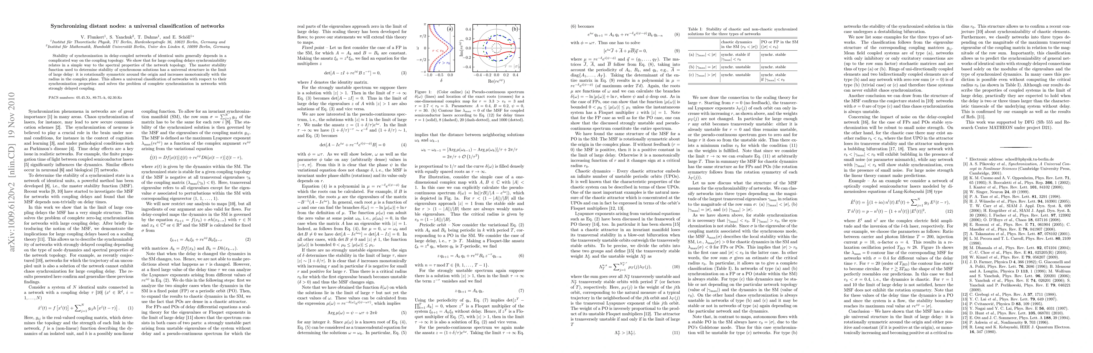 Stability of synchronization in delay-coupled networks of identical units generally depends in a complicated way on the coupling topology. We show that for large coupling delays synchronizability relates in a simple way to the spectral properties of the network topology. The master stability function used to determine stability of synchronous solutions has a universal structure in the limit of large delay: it is rotationally symmetric around the origin and increases monotonically with the radius in the complex plane. This allows a universal classification of networks with respect to their synchronization properties and solves the problem of complete synchronization in networks with strongly delayed coupling.