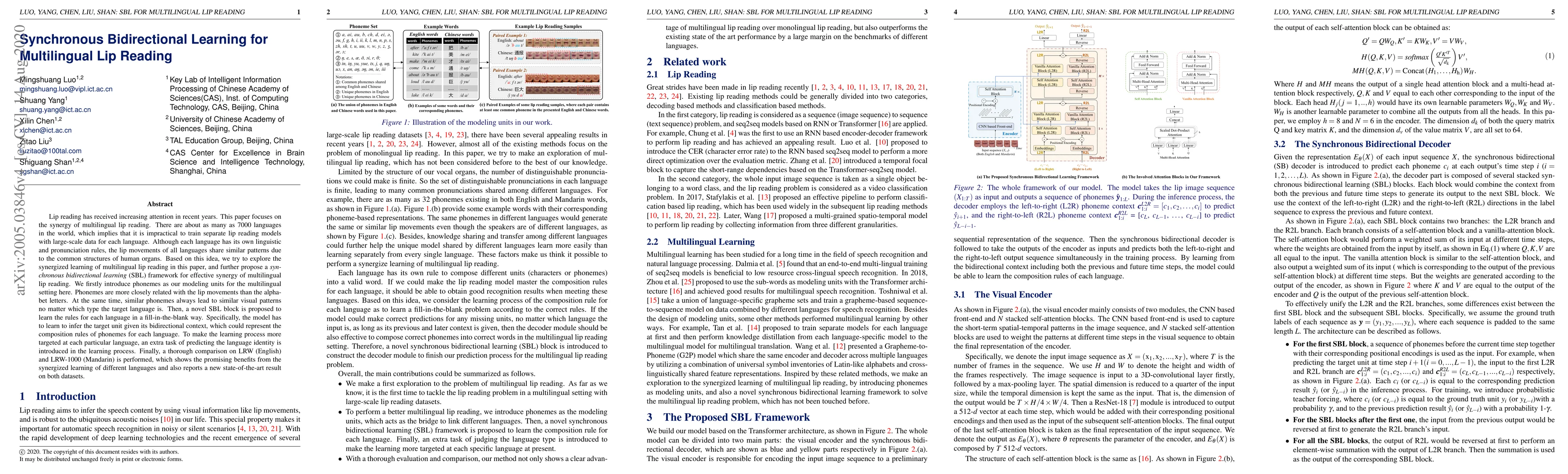 This paper proposes a synchronous bidirectional learning (SBL) framework for multilingual lip reading, leveraging phonemes to exploit shared lip movement patterns across languages. The SBL block infers target phonemes using bidirectional context and includes a language identity prediction task to enhance language-specific learning, achieving state-of-the-art results on English and Mandarin datasets.