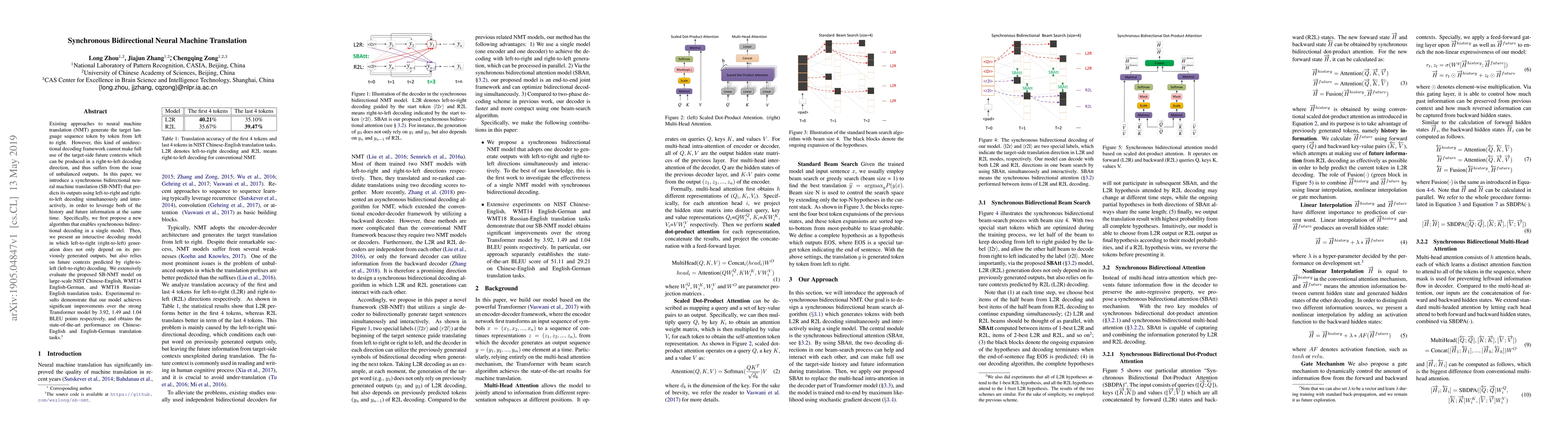 This paper proposes a synchronous bidirectional neural machine translation (SB-NMT) model that simultaneously decodes in both left-to-right and right-to-left directions to utilize both past and future contexts, achieving significant improvements over the Transformer model on multiple translation tasks. The SB-NMT model shows state-of-the-art performance on Chinese-English and English-German translations.