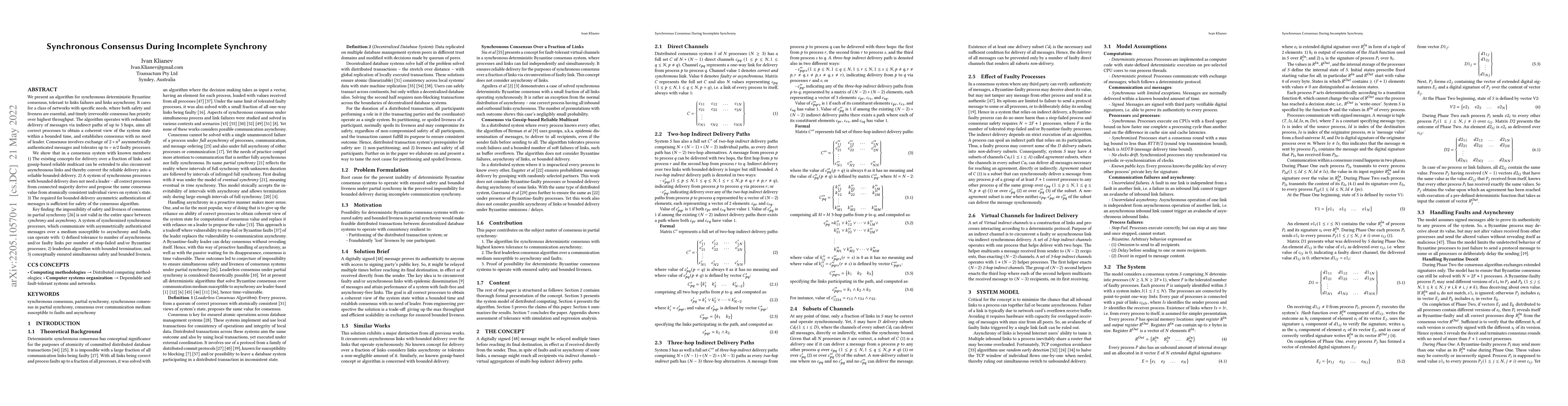 Researchers developed an algorithm for synchronous consensus in networks with incomplete synchrony, ensuring safety and liveness while tolerating link failures and asynchrony.