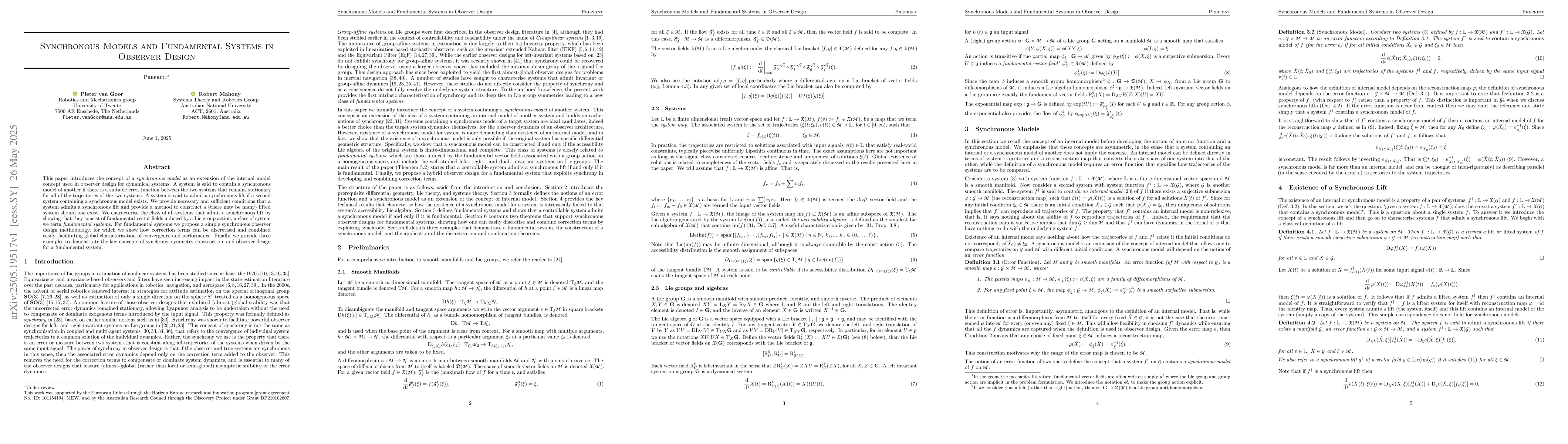 This research contributes to observer design by extending internal model concepts, facilitating the design of observers for a broader class of systems (fundamental systems) and providing a straightforward methodology for synchronous observer design, which can have significant implications in control theory and dynamical systems.