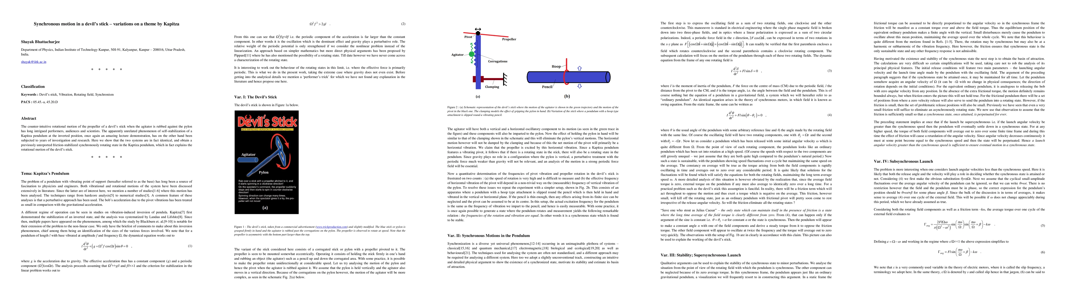 Researchers discovered that a devil's stick's propeller moves synchronously with a friction-stabilized Kapitza pendulum at the inverted position, explaining its rotational motion, in a breakthrough study exploring two seemingly unrelated phenomena.