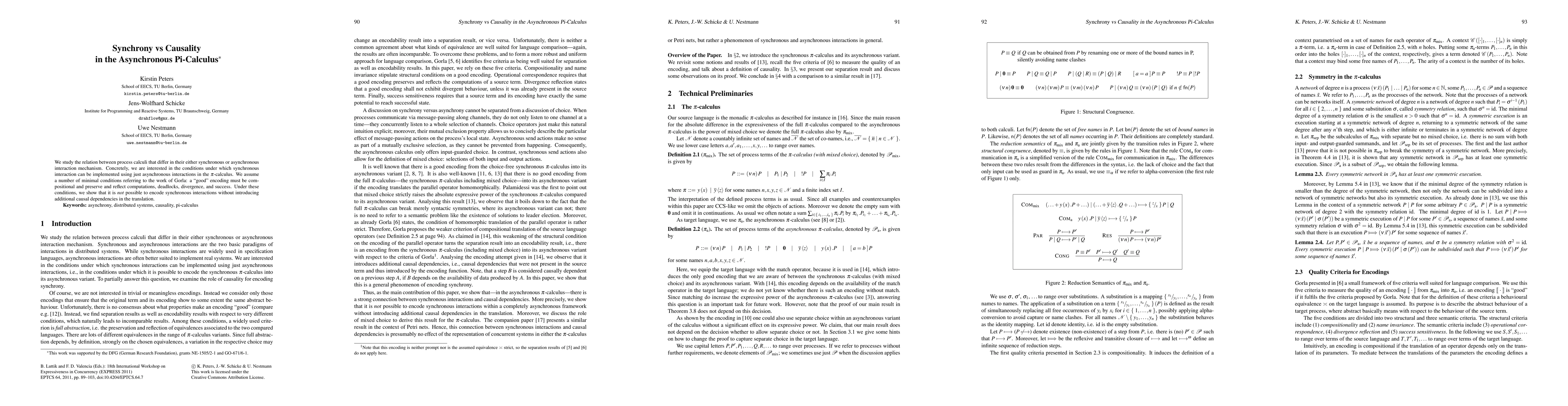 This paper investigates the implementation of synchronous interactions in the pi-calculus using asynchronous mechanisms, finding that a "good" encoding must be compositional and preserve key computational properties. It concludes that synchronous interactions inherently introduce causal dependencies that cannot be fully eliminated in an asynchronous translation.