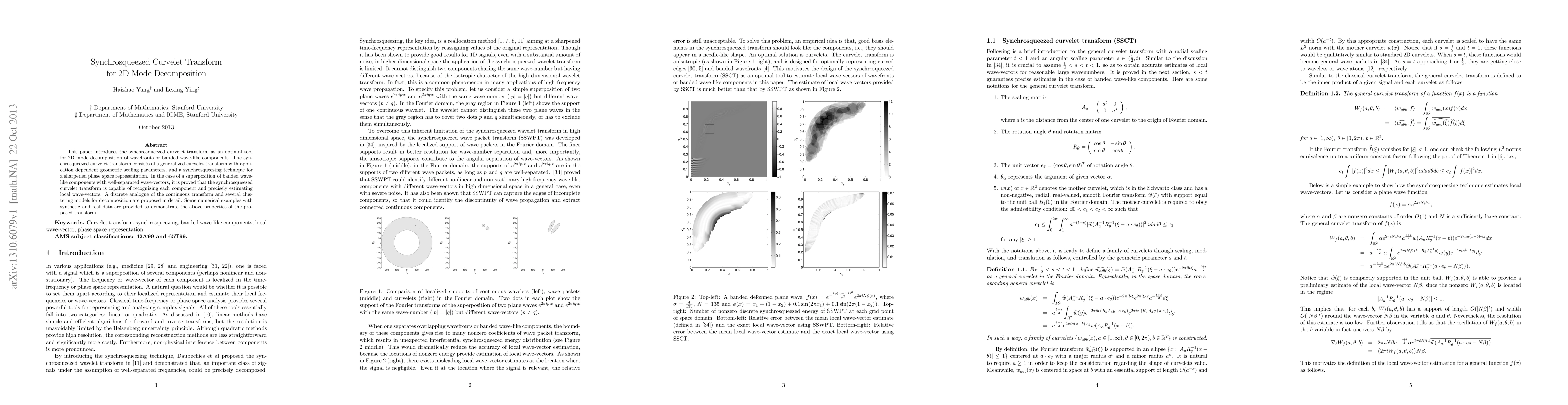 This paper proposes the synchrosqueezed curvelet transform for 2D mode decomposition of wavefronts, offering precise local wave-vector estimation and component recognition for well-separated wave-vectors. Numerical examples validate the effectiveness of the transform through synthetic and real data.
