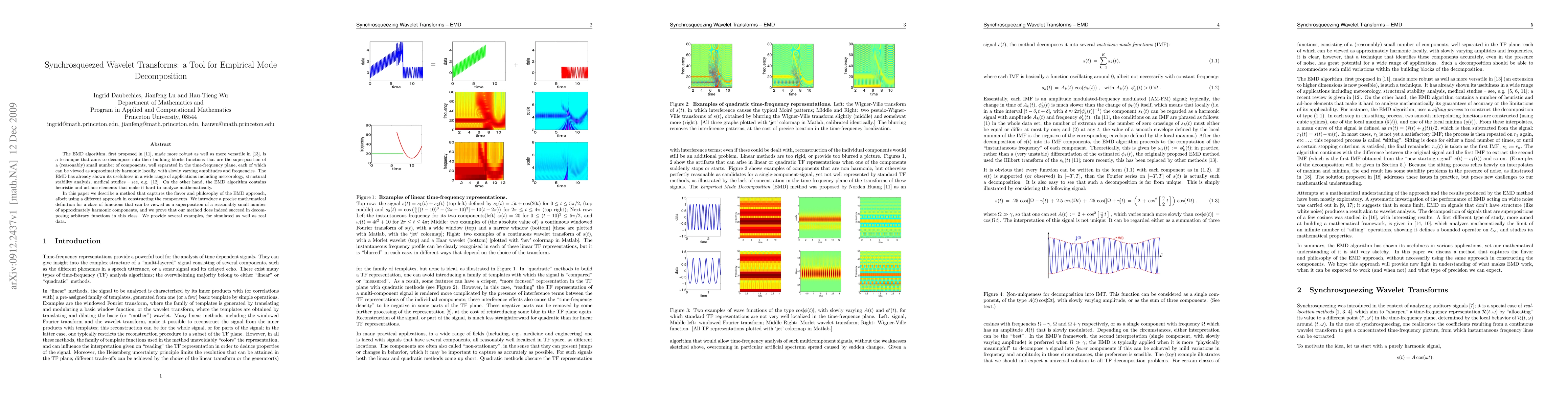 The EMD algorithm, first proposed in [11], made more robust as well as more versatile in [12], is a technique that aims to decompose into their building blocks functions that are the superposition of a (reasonably) small number of components, well separated in the time-frequency plane, each of which can be viewed as approximately harmonic locally, with slowly varying amplitudes and frequencies. The EMD has already shown its usefulness in a wide range of applications including meteorology, structural stability analysis, medical studies -- see, e.g. [13]. On the other hand, the EMD algorithm contains heuristic and ad-hoc elements that make it hard to analyze mathematically. In this paper we describe a method that captures the flavor and philosophy of the EMD approach, albeit using a different approach in constructing the components. We introduce a precise mathematical definition for a class of functions that can be viewed as a superposition of a reasonably small number of approximately harmonic components, and we prove that our method does indeed succeed in decomposing arbitrary functions in this class. We provide several examples, for simulated as well as real data.