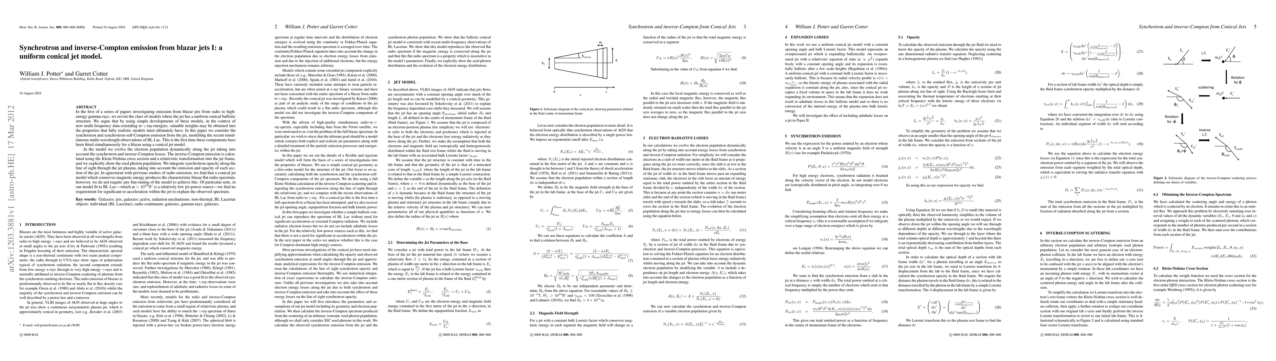 This paper explores synchrotron and inverse-Compton emission from blazar jets using a uniform conical jet model, fitting recent multi-wavelength observations of BL Lac for the first time. The model dynamically evolves the electron population, accounting for synchrotron and inverse-Compton losses, and finds that a conical jet conserving magnetic energy naturally produces the characteristic blazar flat radio spectrum without requiring significant re-acceleration.