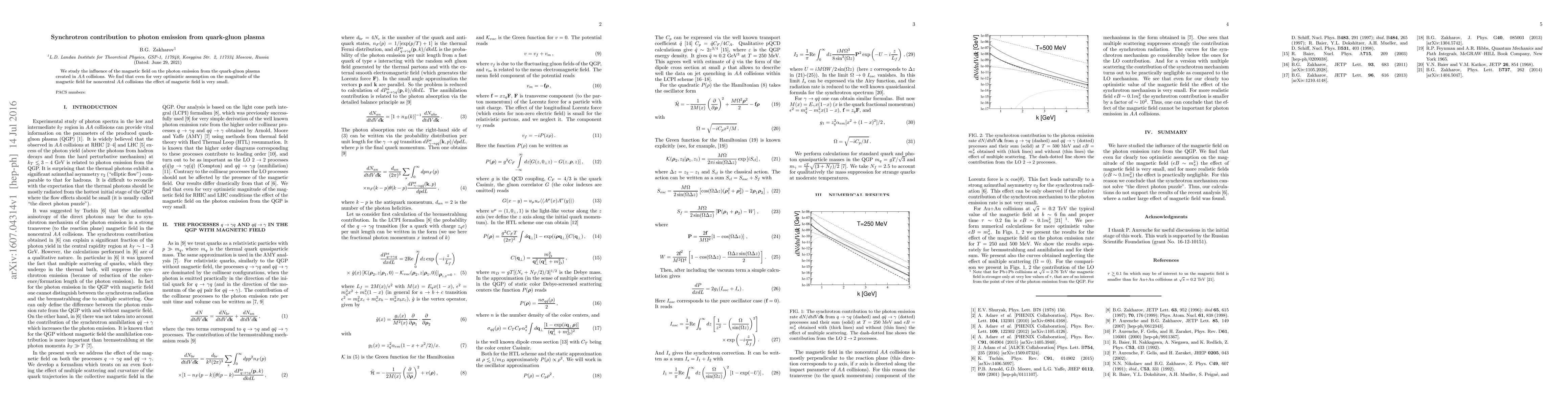 We study the influence of the magnetic field on the photon emission from the quark-gluon plasma created in $AA$ collisions. We find that even for very optimistic assumption on the magnitude of the magnetic field for noncentral $AA$ collisions the effect of magnetic field is very small.