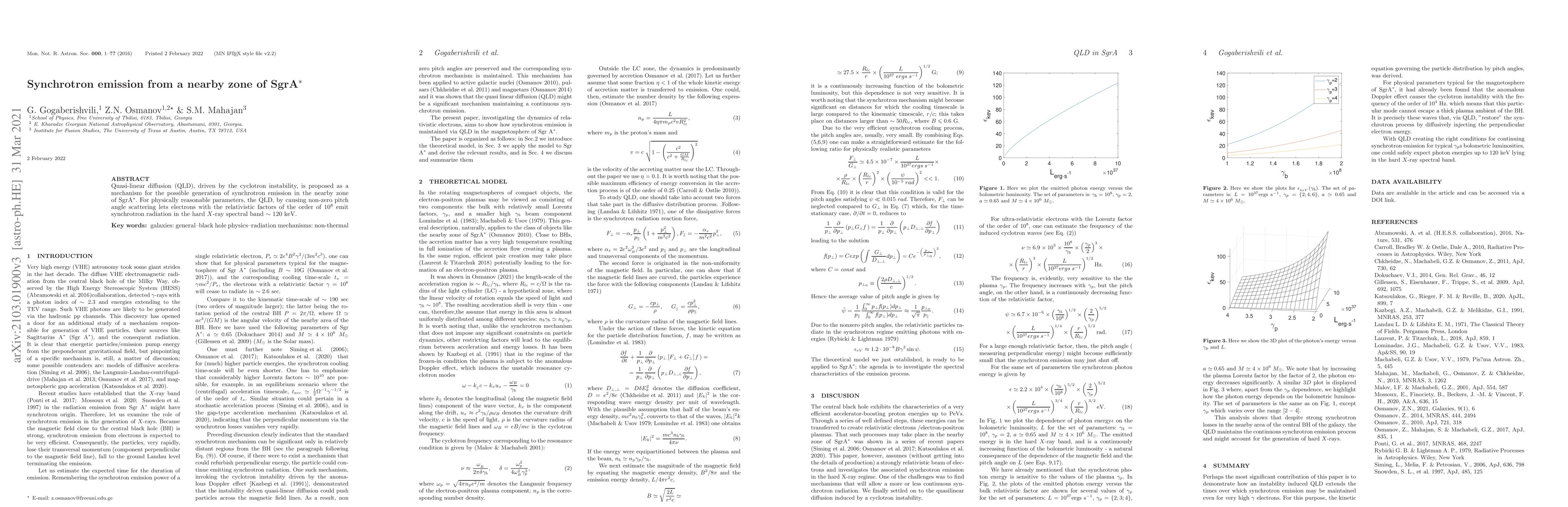 Researchers propose that quasi-linear diffusion in a nearby zone of SgrA$^*$ could generate synchrotron emission, producing hard X-ray radiation at around 120 keV.