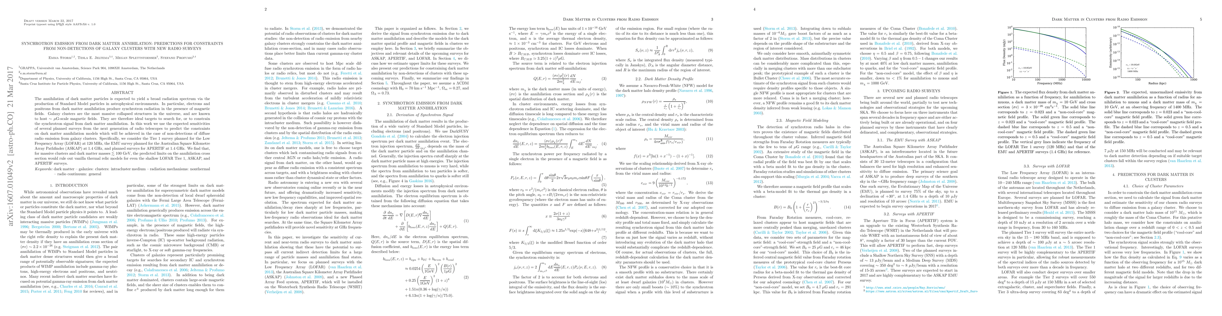 This paper predicts constraints on dark matter annihilation models from non-detections of synchrotron radiation in galaxy clusters using upcoming radio surveys. It finds that even shallow surveys like LOFAR, ASKAP, and APERTIF could rule out vanilla thermal relic models for dark matter masses up to 100 GeV.
