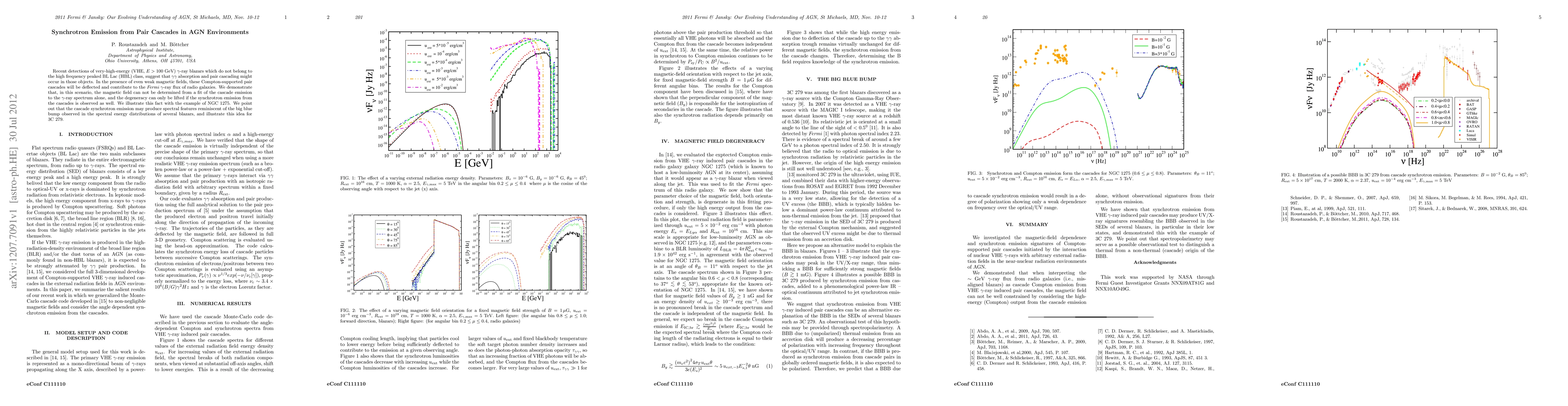 This paper investigates the synchrotron emission from pair cascades in Active Galactic Nuclei (AGN) environments, particularly in non-HBL blazars, suggesting that gamma-ray flux from these objects is influenced by Compton-supported pair cascades. It concludes that magnetic field determination requires both gamma-ray and synchrotron emission observations to resolve degeneracies, exemplified by NGC 1275 and 3C 279.