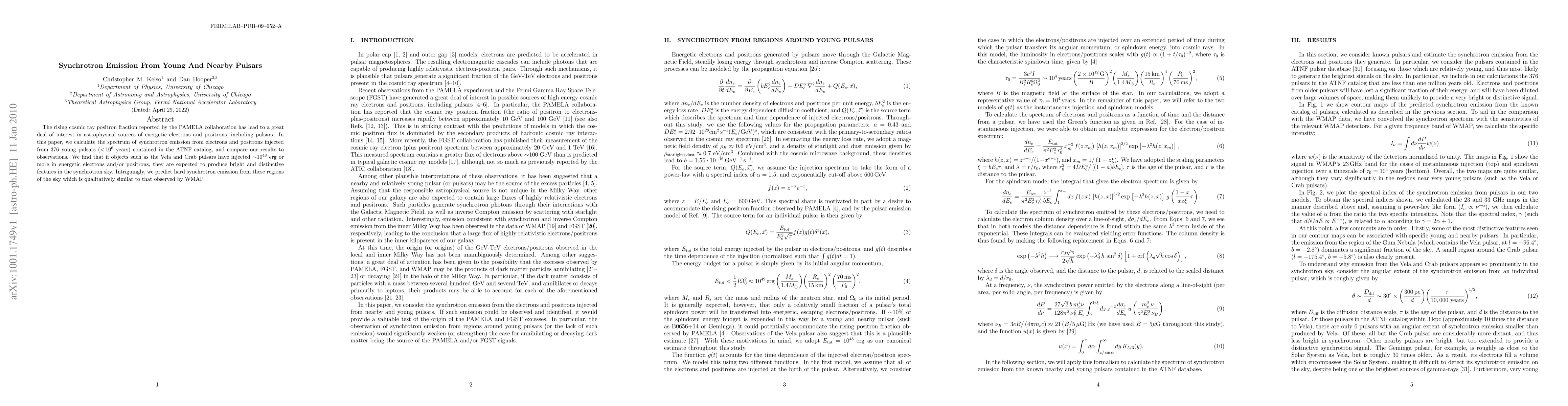 This paper calculates the synchrotron emission spectrum from 376 young pulsars, finding that pulsars like Vela and Crab could inject significant energetic electrons/positrons, producing distinctive features in the synchrotron sky and potentially explaining hard synchrotron emission observed by WMAP.