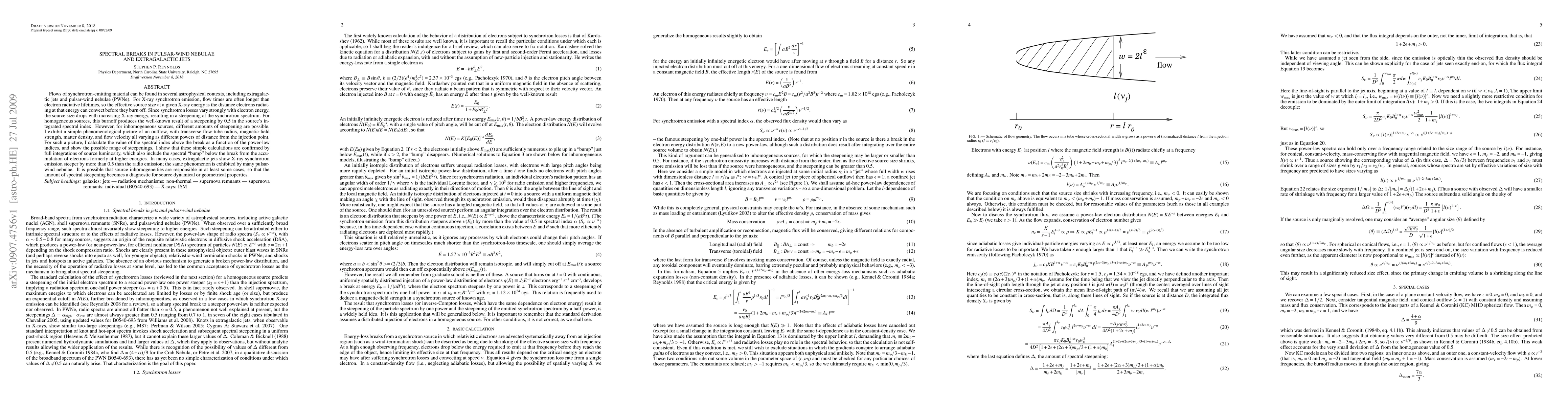 This paper investigates synchrotron-loss spectral breaks in pulsar-wind nebulae and extragalactic jets, showing that inhomogeneous sources can exhibit varying steepenings in their synchrotron spectra due to differing electron radiative lifetimes. The study provides a phenomenological model to calculate spectral index values above the break, confirming that inhomogeneities may explain steeper X-ray synchrotron emissions compared to radio emissions.