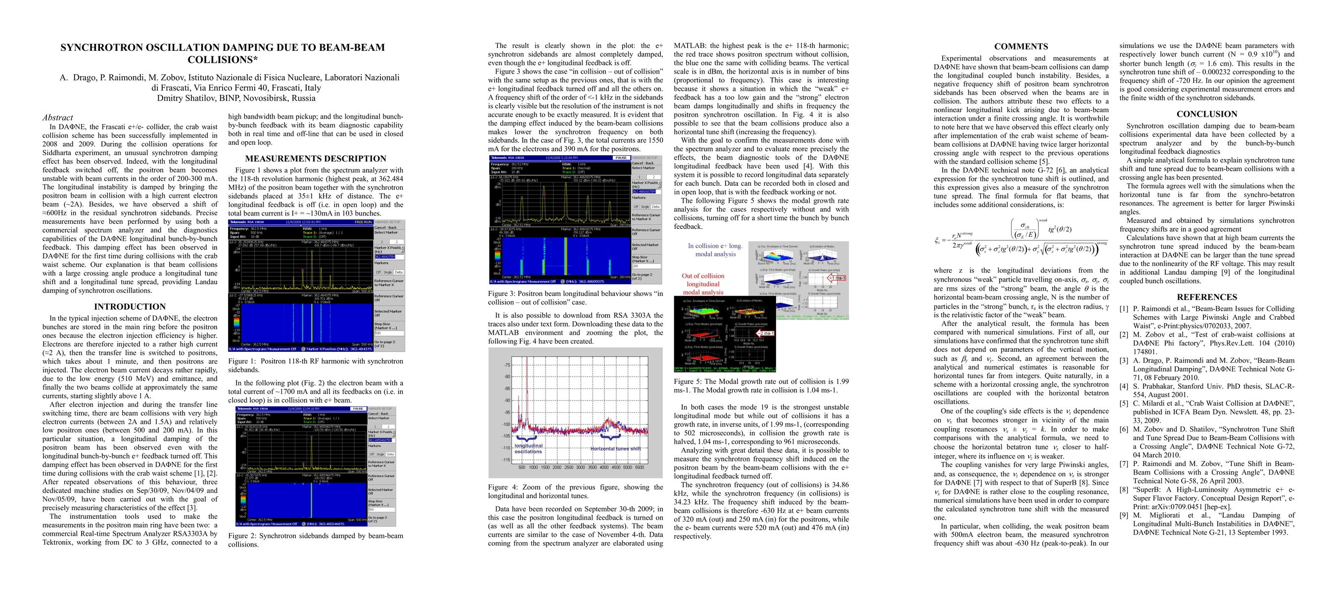 In DA{\Phi}NE, the Frascati e+/e- collider, the crab waist collision scheme has been successfully implemented in 2008 and 2009. During the collision operations for Siddharta experiment, an unusual synchrotron damping effect has been observed. Indeed, with the longitudinal feedback switched off, the positron beam becomes unstable with beam currents in the order of 200-300 mA. The longitudinal instability is damped by bringing the positron beam in collision with a high current electron beam (~2A). Besides, we have observed a shift of \approx 600Hz in the residual synchrotron sidebands. Precise measurements have been performed by using both a commercial spectrum analyzer and the diagnostics capabilities of the DA{\Phi}NE longitudinal bunch-by-bunch feedback. This damping effect has been observed in DA{\Phi}NE for the first time during collisions with the crab waist scheme. Our explanation is that beam collisions with a large crossing angle produce a longitudinal tune shift and a longitudinal tune spread, providing Landau damping of synchrotron oscillations.