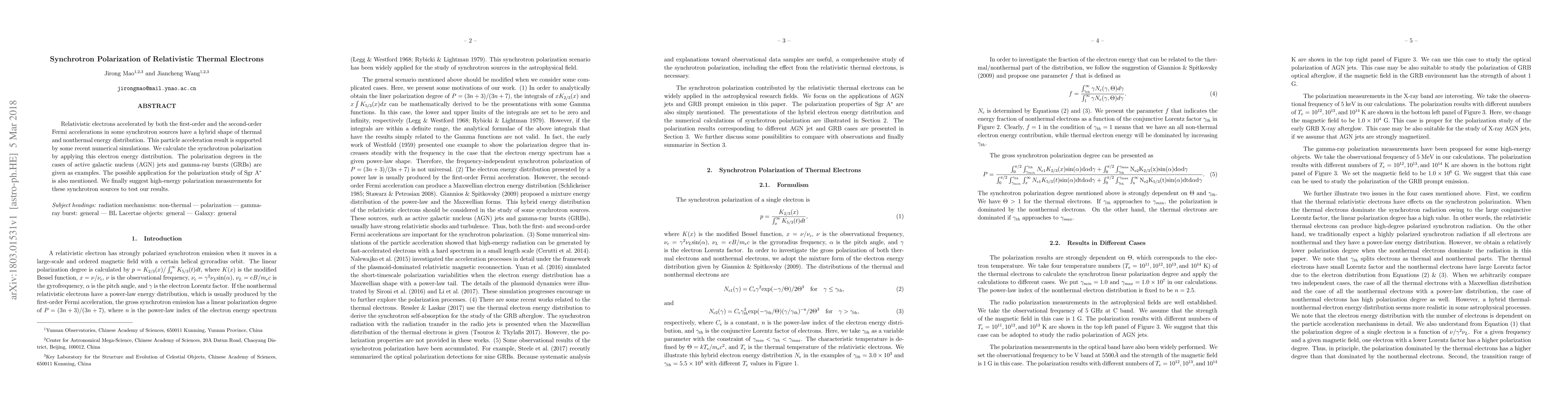 This paper investigates the synchrotron polarization of relativistic thermal electrons accelerated by Fermi mechanisms in synchrotron sources, providing calculations for AGN jets and GRBs. It suggests high-energy polarization measurements to validate the proposed electron energy distribution model.