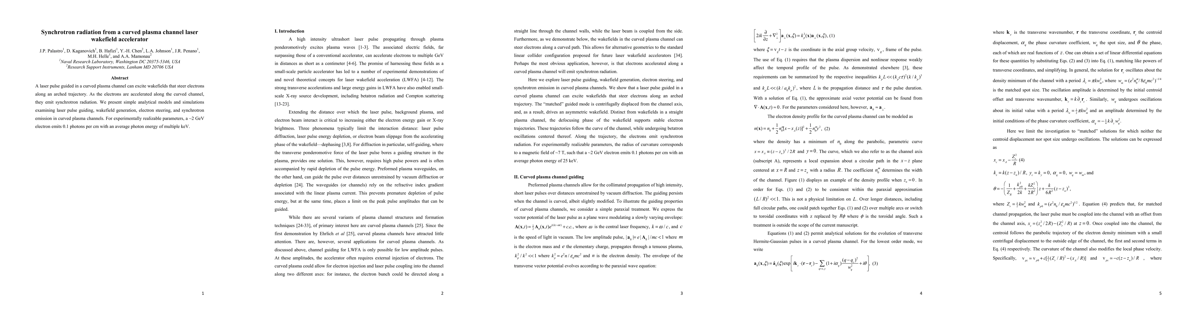 This paper explores synchrotron radiation from electrons accelerated in a curved plasma channel driven by a laser wakefield. Analytical models and simulations predict that electrons can emit multiple keV photons, with a potential emission rate of 0.1 photons per cm for ~2 GeV electrons.