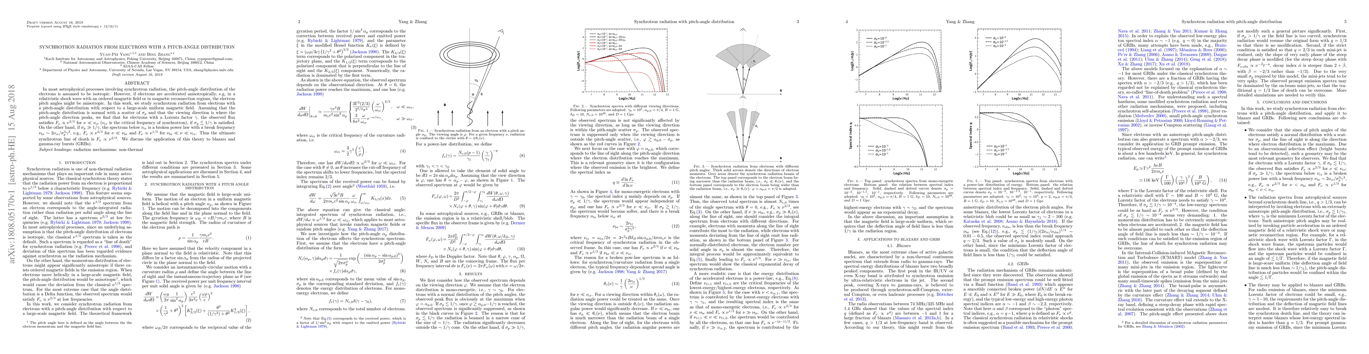 This paper investigates synchrotron radiation from electrons with anisotropic pitch-angle distributions, finding that the observed flux varies with frequency depending on the pitch-angle scatter. The study applies this theory to blazars and gamma-ray bursts, revealing distinct spectral behaviors based on the pitch-angle distribution.