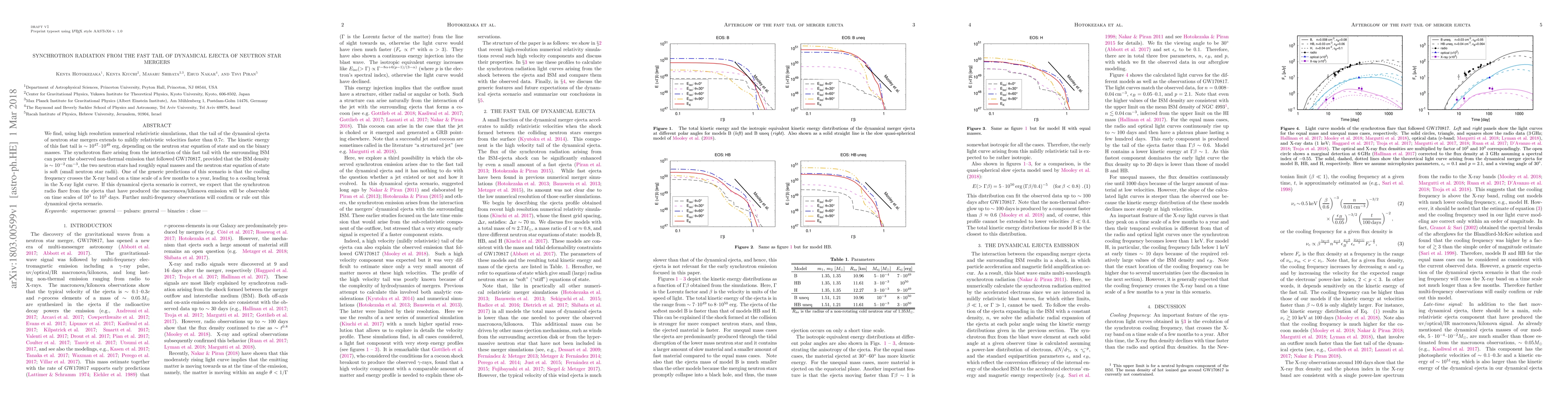 This study reveals that neutron star mergers produce a fast tail of dynamical ejecta moving at velocities greater than 0.7c, with kinetic energy ranging from $10^{47}$ to $10^{49}$ erg. The synchrotron radiation from this ejecta could explain the non-thermal emissions observed post-GW170817, contingent on specific ISM conditions and neutron star properties.