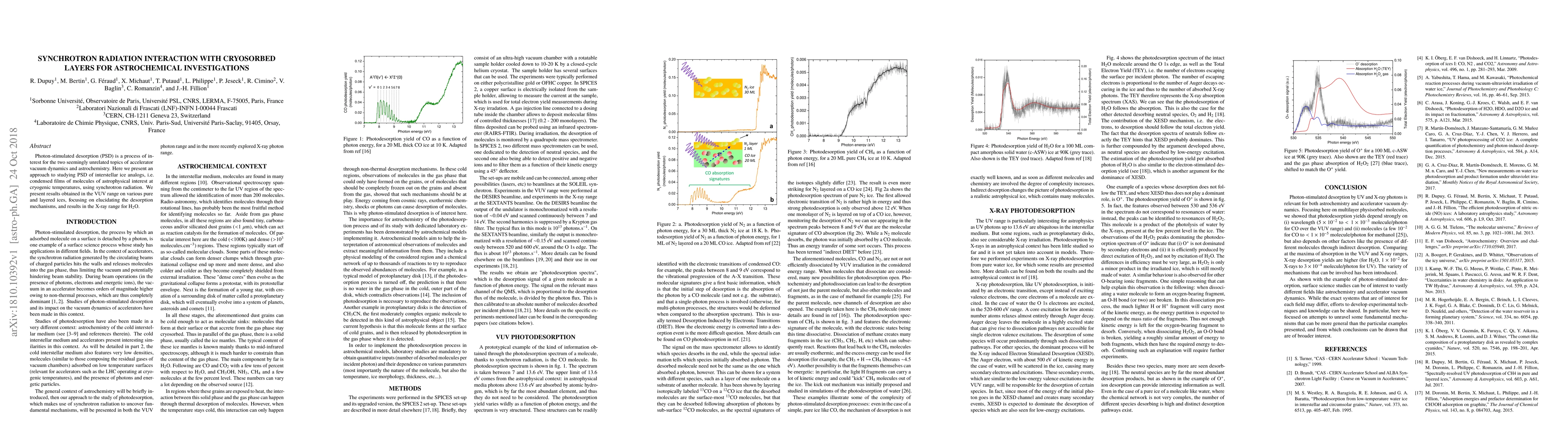 Photon-stimulated desorption (PSD) is a process of interest for the two seemingly unrelated topics of accelerator vacuum dynamics and astrochemistry. Here we present an approach to studying PSD of interstellar ice analogs, i.e. condensed films of molecules of astrophysical interest at cryogenic temperatures, using synchrotron radiation. We present results obtained in the VUV range on various pure and layered ices, focusing on elucidating the desorption mechanisms, and results in the X-ray range for H$_2$O.