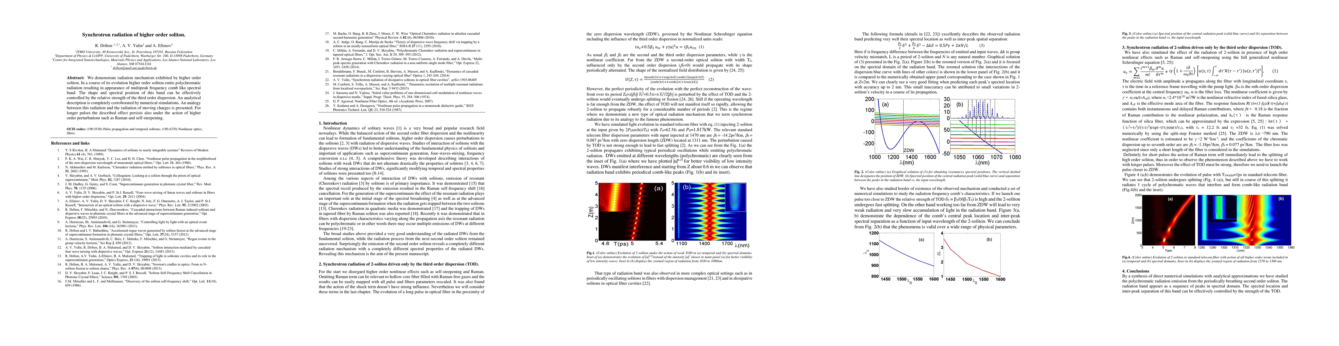 We demonstrate radiation mechanism exhibited by higher order soliton. In a course of its evolution higher order soliton emits polychromatic radiation resulting in appearance of multipeak frequency comb like spectral band. The shape and spectral position of this band can be effectively controlled by the relative strength of the third order dispersion. An analytical description is completely corroborated by numerical simulations. An analogy between this radiation and the radiation of moving charges is presented. For longer pulses the described effect persists also under the action of higher order perturbations such as Raman and self-steepening.