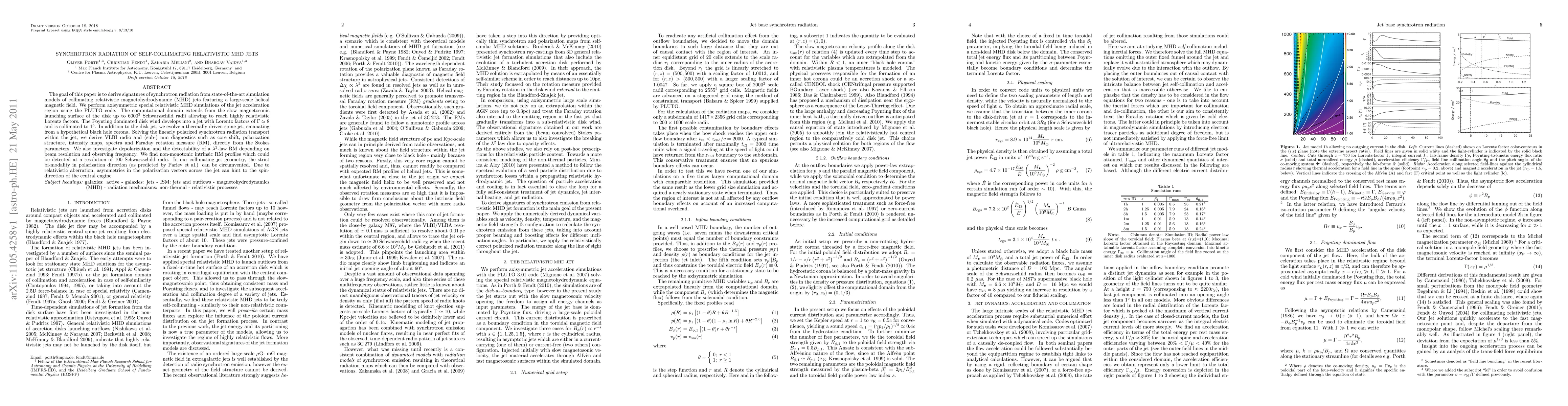 This research uses advanced simulations to study synchrotron radiation from relativistic MHD jets with helical magnetic fields. It derives VLBI radio and mm diagnostics, revealing non-monotonic RM profiles detectable at high resolution, and suggests polarization vector asymmetries can indicate central engine spin direction.
