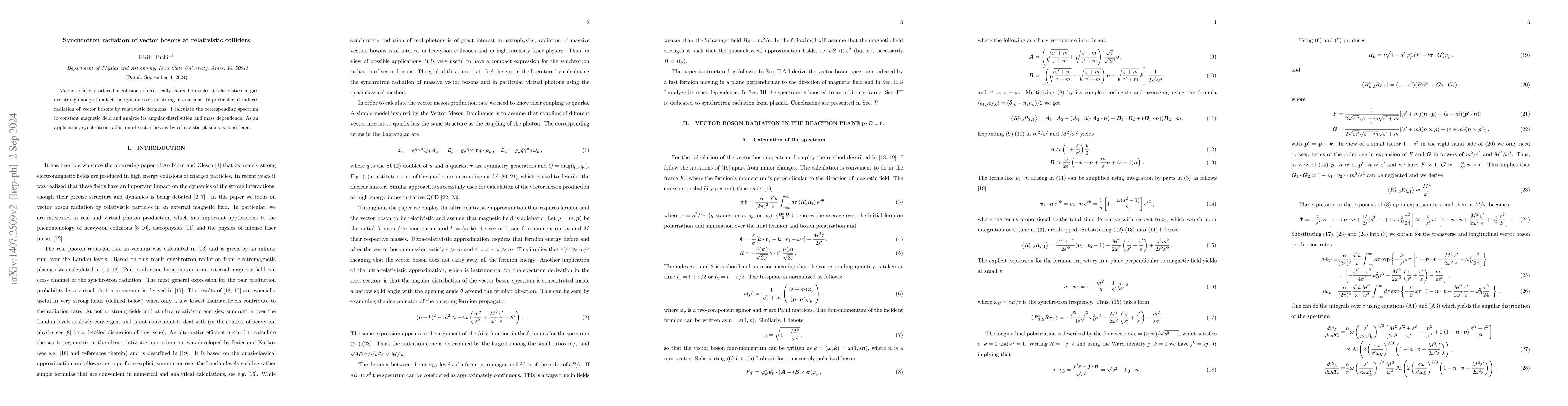 Magnetic fields produced in collisions of electrically charged particles at relativistic energies are strong enough to affect the dynamics of the strong interactions. In particular, it induces radiation of vector bosons by relativistic fermions. To develop deeper insight into this problem, I calculate the corresponding spectrum in constant magnetic field and analyze its angular distribution and mass dependence. As an application, I consider synchrotron radiation of virtual photon by the quark-gluon plasma.