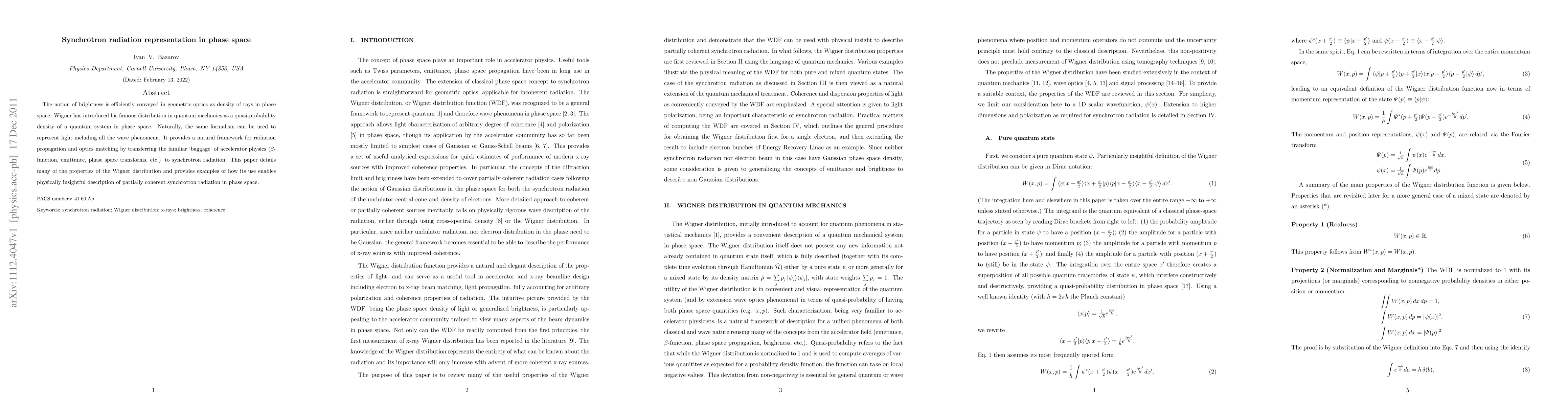Researchers use Wigner distribution to represent synchrotron radiation in phase space, enabling a physically insightful description of partially coherent radiation.