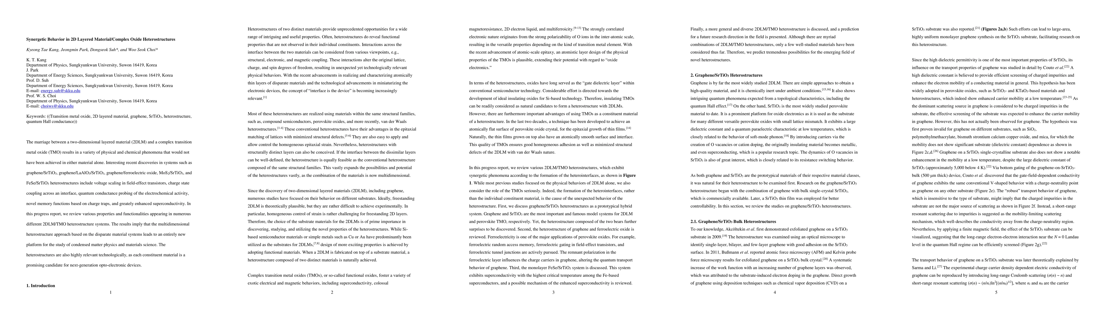 This paper explores the synergistic phenomena in heterostructures combining two-dimensional layered materials (2DLM) with complex transition metal oxides (TMO), revealing enhanced physical and chemical properties unattainable in individual materials. These heterostructures exhibit significant technological potential, including improved field-effect transistors, novel memory functions, and enhanced superconductivity.