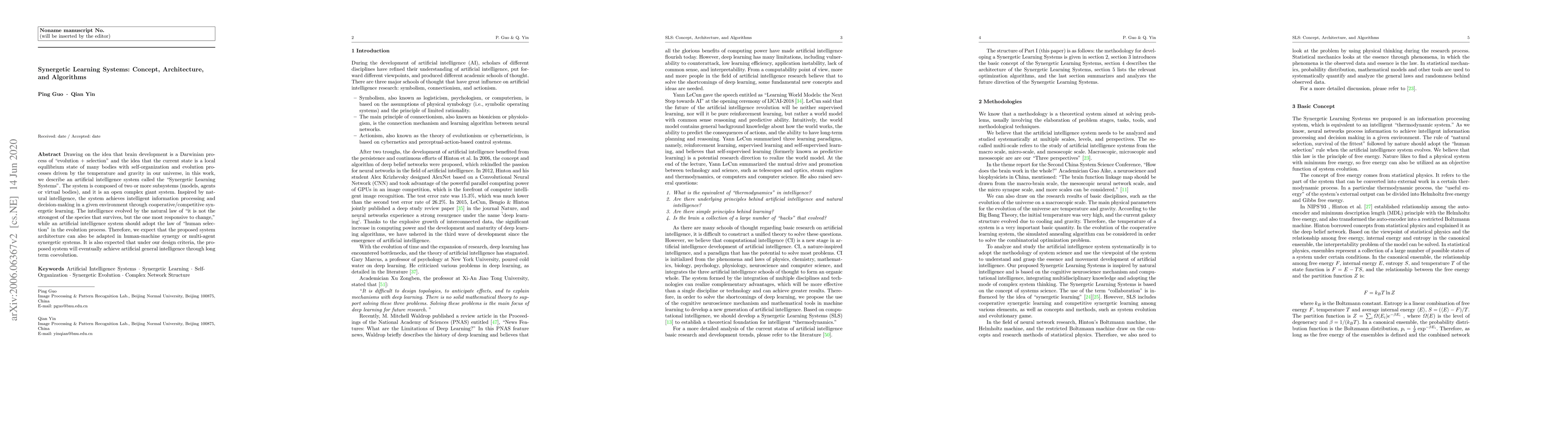 This paper introduces Synergetic Learning Systems, an AI model inspired by natural intelligence and Darwinian evolution. The system, composed of cooperative/competitive subsystems, aims to achieve adaptive intelligence and potentially artificial general intelligence through long-term coevolution and human-machine synergy.