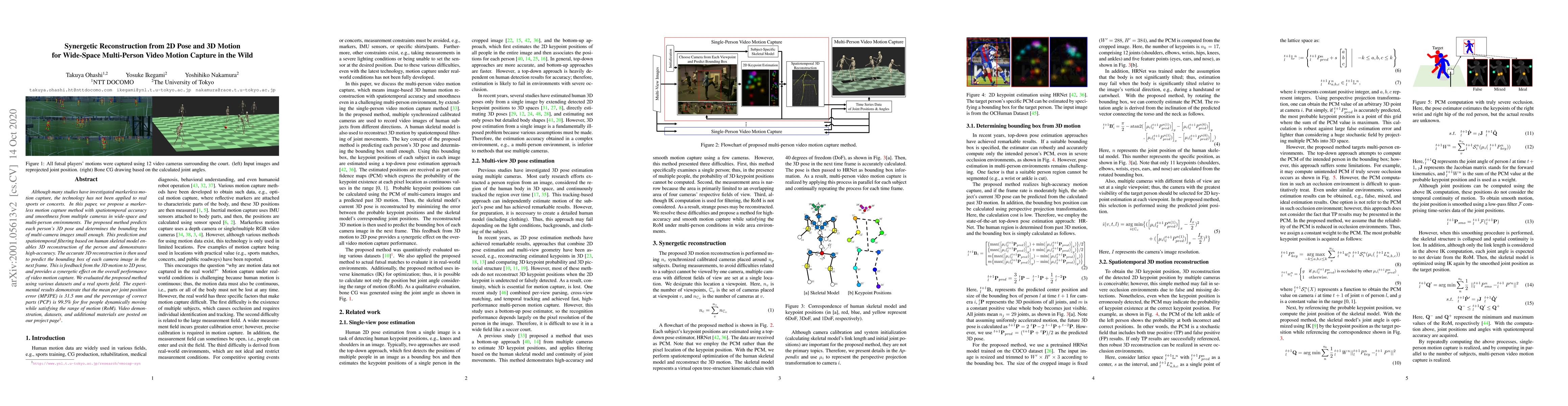 This paper presents a markerless motion capture method for multi-person environments in wide-space settings, achieving high spatiotemporal accuracy and smoothness. The method synergetically reconstructs 3D poses from 2D camera inputs and refines predictions through feedback loops, demonstrating a mean per joint position error of 31.5 mm and a 99.5% percentage of correct parts.