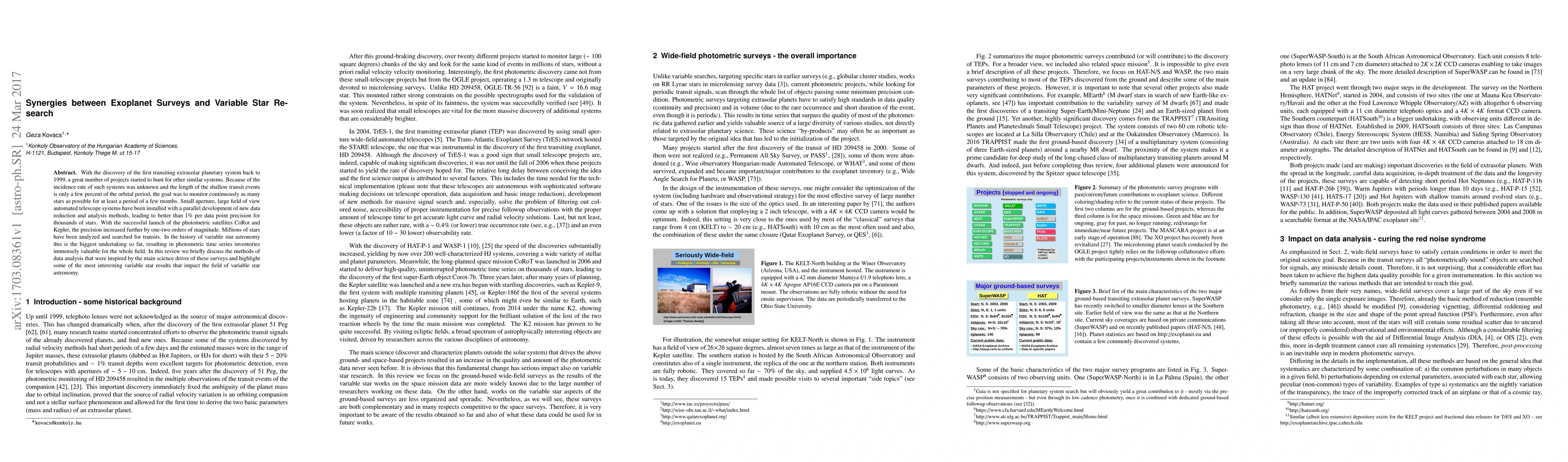 With the discovery of the first transiting extrasolar planetary system back to 1999, a great number of projects started to hunt for other similar systems. Because of the incidence rate of such systems was unknown and the length of the shallow transit events is only a few percent of the orbital period, the goal was to monitor continuously as many stars as possible for at least a period of a few months. Small aperture, large field of view automated telescope systems have been installed with a parallel development of new data reduction and analysis methods, leading to better than 1% per data point precision for thousands of stars. With the successful launch of the photometric satellites CoRot and Kepler, the precision increased further by one-two orders of magnitude. Millions of stars have been analyzed and searched for transits. In the history of variable star astronomy this is the biggest undertaking so far, resulting in photometric time series inventories immensely valuable for the whole field. In this review we briefly discuss the methods of data analysis that were inspired by the main science driver of these surveys and highlight some of the most interesting variable star results that impact the field of variable star astronomy.