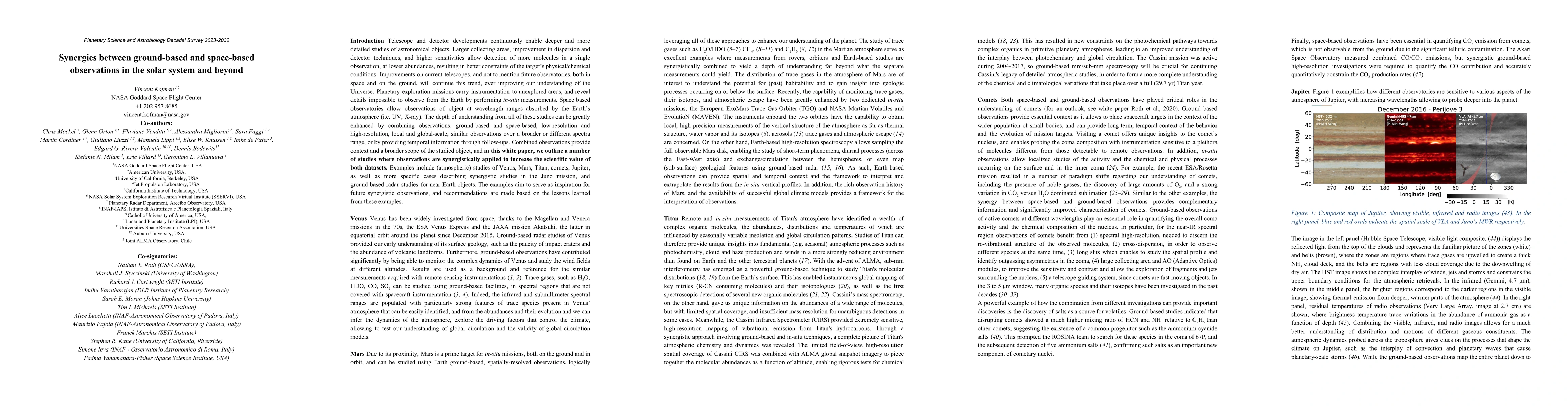 Telescope and detector developments continuously enable deeper and more detailed studies of astronomical objects. Larger collecting areas, improvement in dispersion and detector techniques, and higher sensitivities allow detection of more molecules in a single observation, at lower abundances, resulting in better constraints of the targets physical and chemical conditions. Improvements on current telescopes, and not to mention future observatories, both in space and on the ground, will continue this trend, ever improving our understanding of the Universe. Planetary exploration missions carry instrumentation to unexplored areas, and reveal details impossible to observe from the Earth by performing in-situ measurements. Space based observatories allow observations of object at wavelength ranges absorbed by the Earths atmosphere. The depth of understanding from all of these studies can be greatly enhanced by combining observations: ground-based and space-based, low-resolution and high-resolution, local and global-scale, similar observations over a broader or different spectra range, or by providing temporal information through follow-ups. Combined observations provide context and a broader scope of the studied object, and in this white paper, we outline a number of studies where observations are synergistically applied to increase the scientific value of both datasets. Examples include atmospheric studies of Venus, Mars, Titan, comets, Jupiter, as well as more specific cases describing synergistic studies in the Juno mission, and ground-based radar studies for near Earth objects. The examples aim to serve as inspiration for future synergistic observations, and recommendations are made based on the lessons learned from these examples.