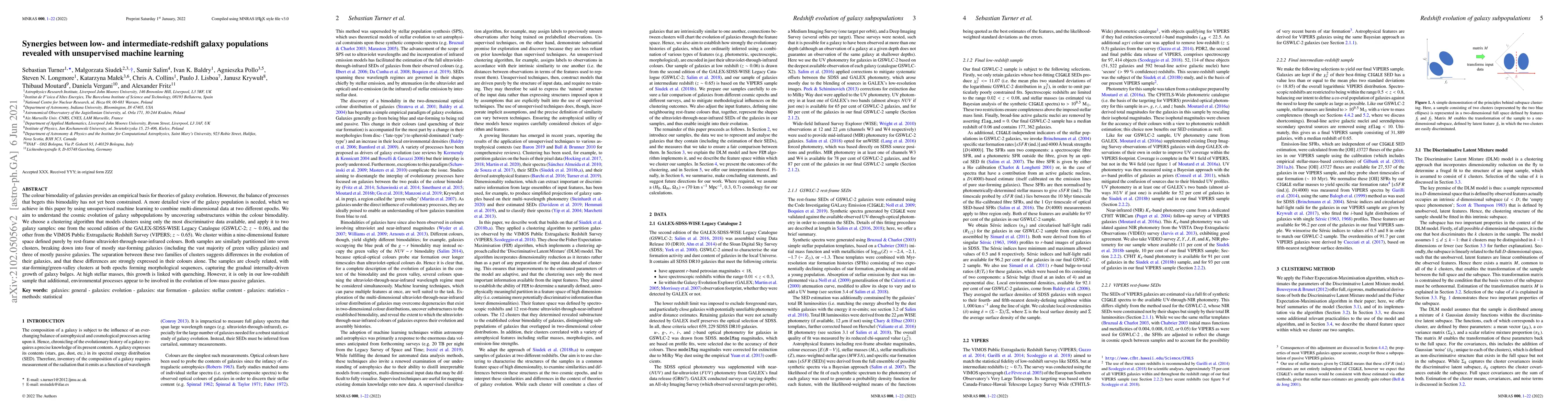 The colour bimodality of galaxies provides an empirical basis for theories of galaxy evolution. However, the balance of processes that begets this bimodality has not yet been constrained. A more detailed view of the galaxy population is needed, which we achieve in this paper by using unsupervised machine learning to combine multi-dimensional data at two different epochs. We aim to understand the cosmic evolution of galaxy subpopulations by uncovering substructures within the colour bimodality. We choose a clustering algorithm that models clusters using only the most discriminative data available, and apply it to two galaxy samples: one from the second edition of the GALEX-SDSS-WISE Legacy Catalogue (GSWLC-2; $z \sim 0.06$), and the other from the VIMOS Public Extragalactic Redshift Survey (VIPERS; $z \sim 0.65$). We cluster within a nine-dimensional feature space defined purely by rest-frame ultraviolet-through-near-infrared colours. Both samples are similarly partitioned into seven clusters, breaking down into four of mostly star-forming galaxies (including the vast majority of green valley galaxies) and three of mostly passive galaxies. The separation between these two families of clusters suggests differences in the evolution of their galaxies, and that these differences are strongly expressed in their colours alone. The samples are closely related, with star-forming/green-valley clusters at both epochs forming morphological sequences, capturing the gradual internally-driven growth of galaxy bulges. At high stellar masses, this growth is linked with quenching. However, it is only in our low-redshift sample that additional, environmental processes appear to be involved in the evolution of low-mass passive galaxies.
