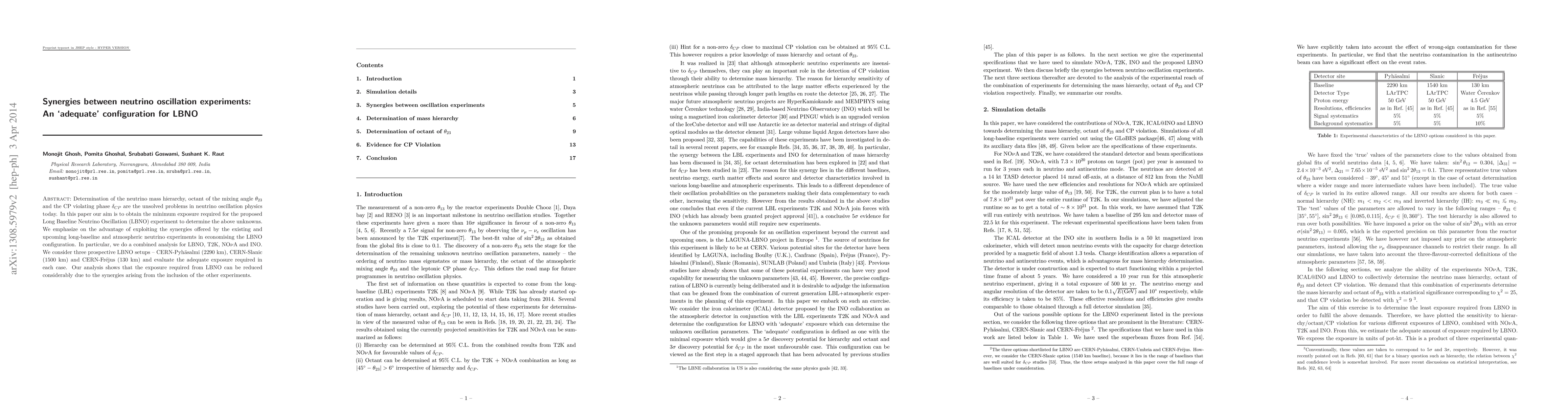 The paper analyzes the required exposure for the Long Baseline Neutrino Oscillation (LBNO) experiment to determine key neutrino parameters, showing that synergies with other experiments can significantly reduce needed exposure.