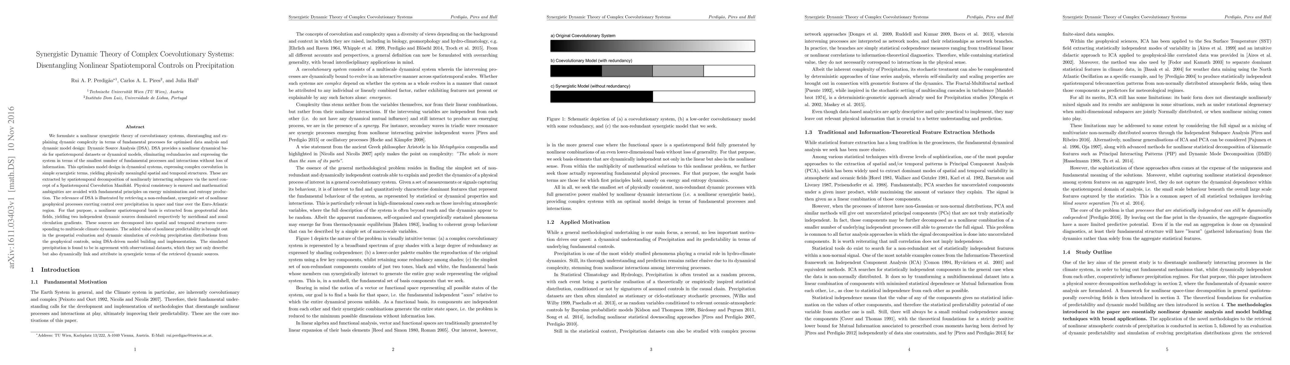 This paper introduces a nonlinear synergistic theory for complex coevolutionary systems, utilizing Dynamic Source Analysis (DSA) to simplify and optimize the modeling of spatiotemporal datasets. The DSA method extracts fundamental processes from geopotential data, revealing two dominant dynamic sources that control precipitation in the Euro-Atlantic region, thus enhancing nonlinear predictability and model accuracy.