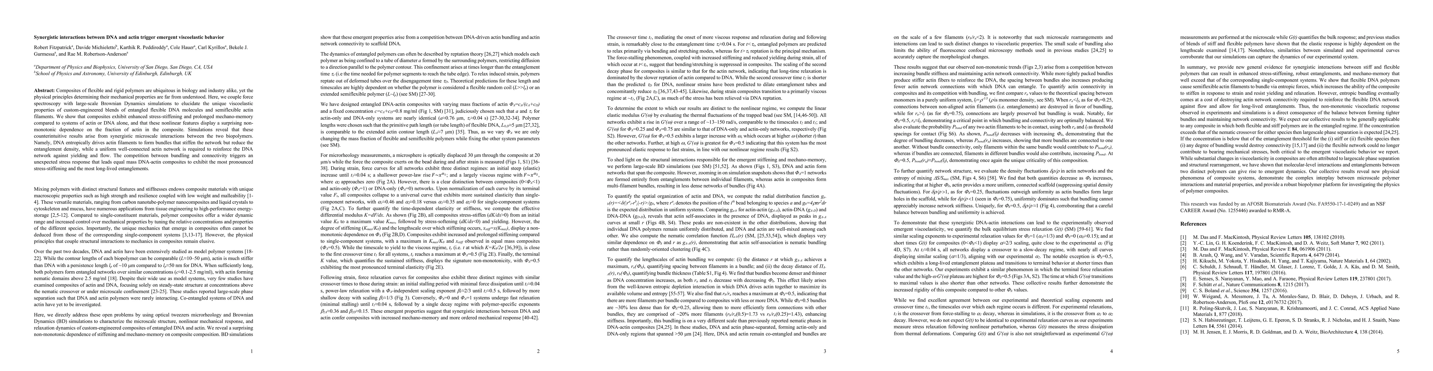 This study combines force spectroscopy and simulations to reveal that blends of DNA and actin exhibit unique viscoelastic properties due to synergistic interactions. The composites show enhanced stress-stiffening and prolonged mechano-memory, driven by DNA-induced actin bundling and a percolating actin network that reinforces the DNA network.