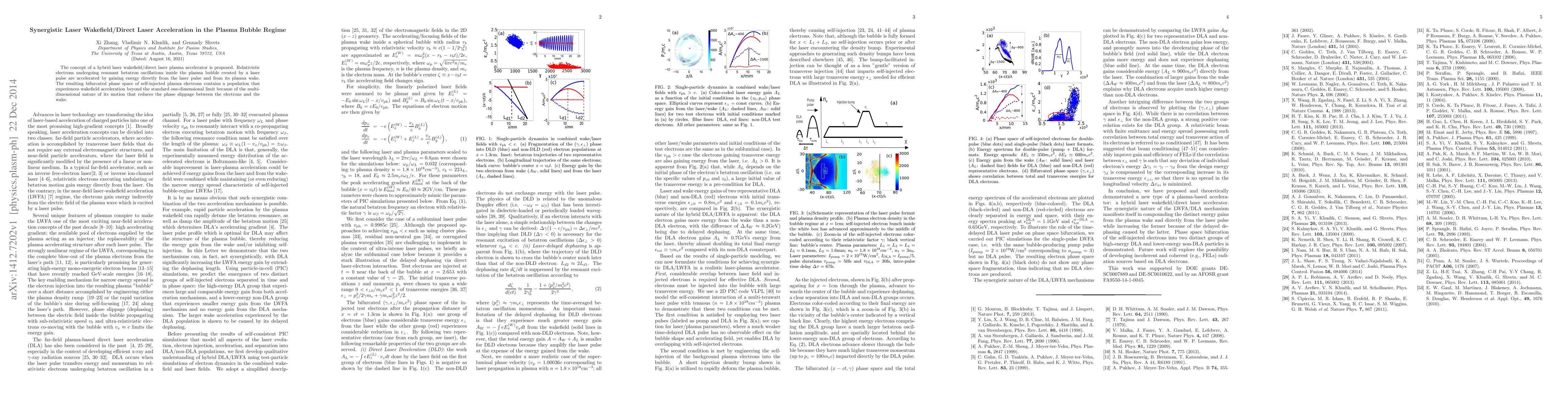 The concept of a hybrid laser wakefield/direct laser plasma accelerator is proposed. Relativistic electrons undergoing resonant betatron oscillations inside the plasma bubble created by a laser pulse are accelerated by gaining energy directly from the laser pulse and from its plasma wake. The resulting bifurcated phase space of self-injected plasma electrons contains a population that experiences wakefield acceleration beyond the standard one-dimensional limit because of the multi-dimensional nature of its motion that reduces the phase slippage between the electrons and the wake.