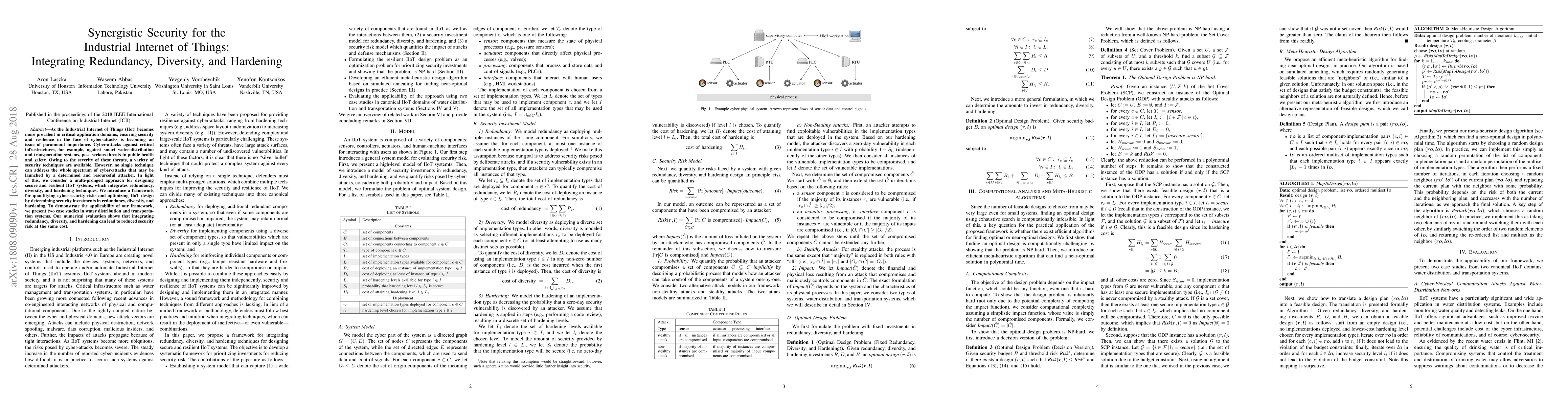As the Industrial Internet of Things (IIot) becomes more prevalent in critical application domains, ensuring security and resilience in the face of cyber-attacks is becoming an issue of paramount importance. Cyber-attacks against critical infrastructures, for example, against smart water-distribution and transportation systems, pose serious threats to public health and safety. Owing to the severity of these threats, a variety of security techniques are available. However, no single technique can address the whole spectrum of cyber-attacks that may be launched by a determined and resourceful attacker. In light of this, we consider a multi-pronged approach for designing secure and resilient IIoT systems, which integrates redundancy, diversity, and hardening techniques. We introduce a framework for quantifying cyber-security risks and optimizing IIoT design by determining security investments in redundancy, diversity, and hardening. To demonstrate the applicability of our framework, we present two case studies in water distribution and transportation a case study in water-distribution systems. Our numerical evaluation shows that integrating redundancy, diversity, and hardening can lead to reduced security risk at the same cost.