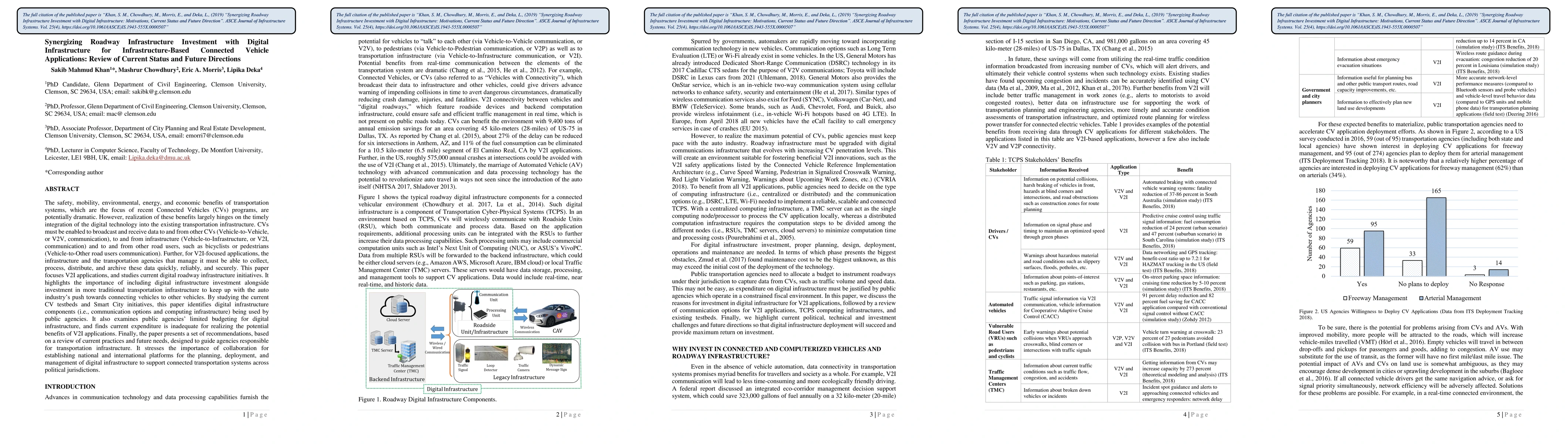 This paper reviews the integration of digital infrastructure investments with traditional roadway infrastructure to support connected vehicle applications, emphasizing the importance of timely digital upgrades to realize the benefits of vehicle-to-infrastructure communication. It highlights the inadequacy of current public budgets for digital infrastructure and proposes recommendations for better collaboration and planning to meet future needs.