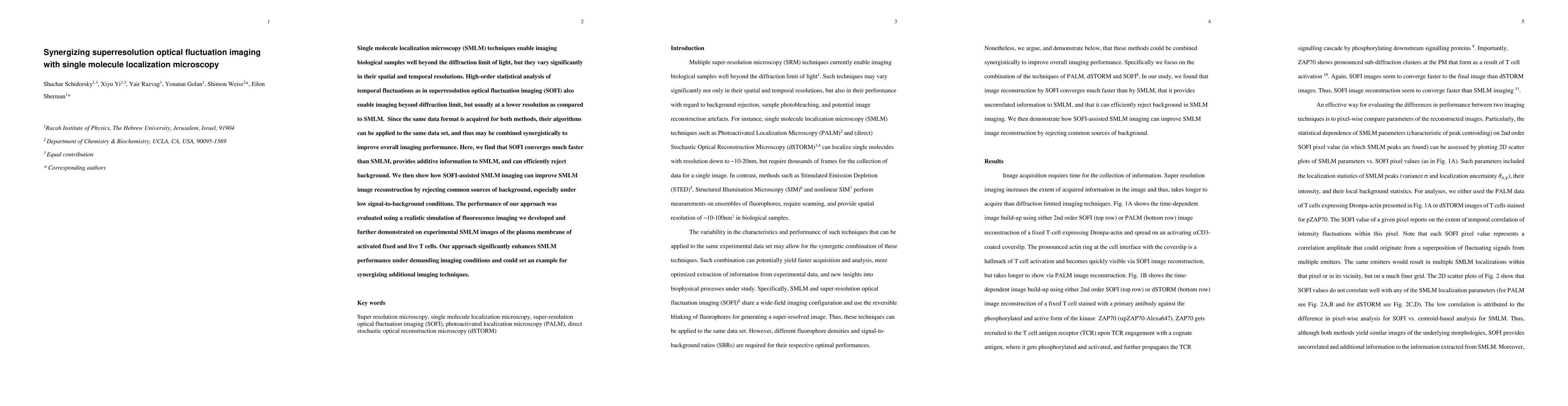 This research combines SOFI with SMLM to improve overall imaging performance, especially under low signal-to-background conditions.