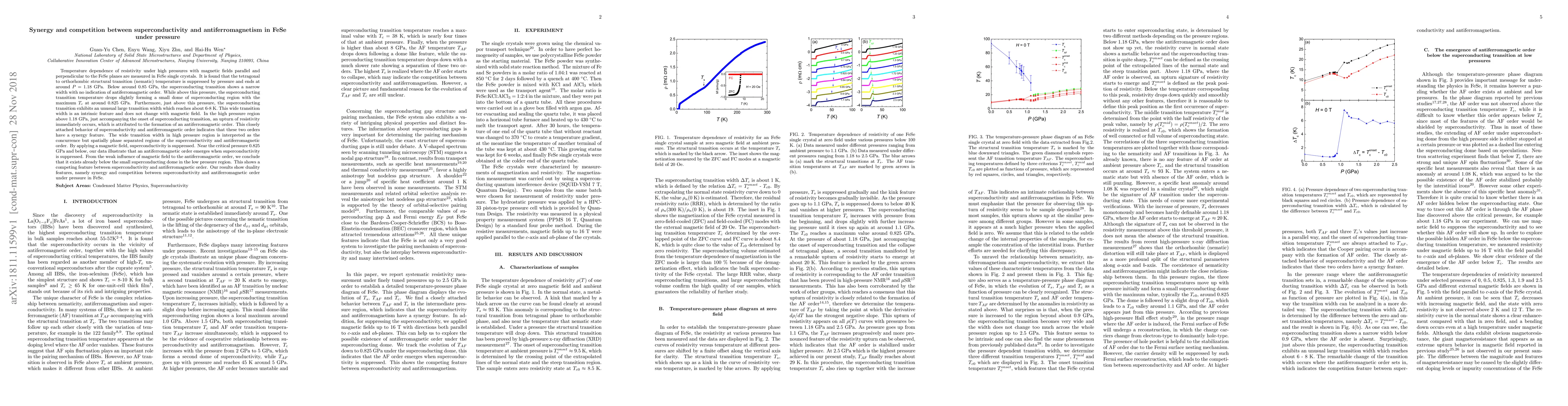 This study explores the interplay between superconductivity and antiferromagnetism in FeSe under varying pressures, revealing that these phenomena exhibit both synergistic and competitive behaviors. The suppression of the structural transition leads to a dome-shaped superconducting transition temperature peaking at 0.825 GPa, accompanied by an unusual wide transition width and concurrent antiferromagnetic order onset.