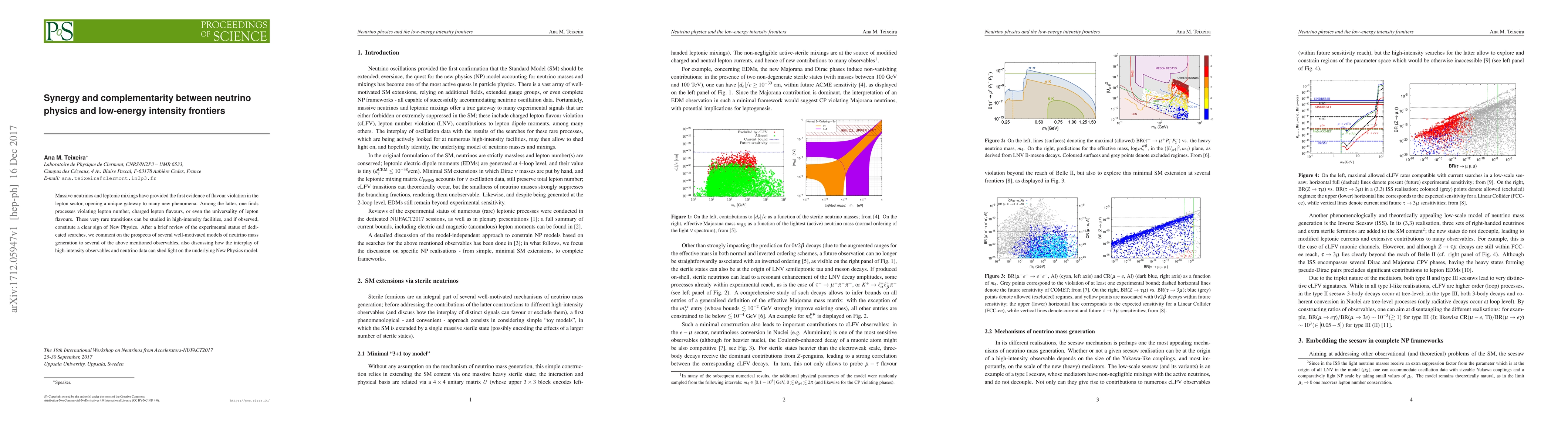 Massive neutrinos and leptonic mixings have provided the first evidence of flavour violation in the lepton sector, opening a unique gateway to many new phenomena. Among the latter, one finds processes violating lepton number, charged lepton flavours, or even the universality of lepton flavours. These very rare transitions can be studied in high-intensity facilities, and if observed, constitute a clear sign of New Physics. After a brief review of the experimental status of dedicated searches, we comment on the prospects of several well-motivated models of neutrino mass generation to several of the above mentioned observables, also discussing how the interplay of high-intensity observables and neutrino data can shed light on the underlying New Physics model.