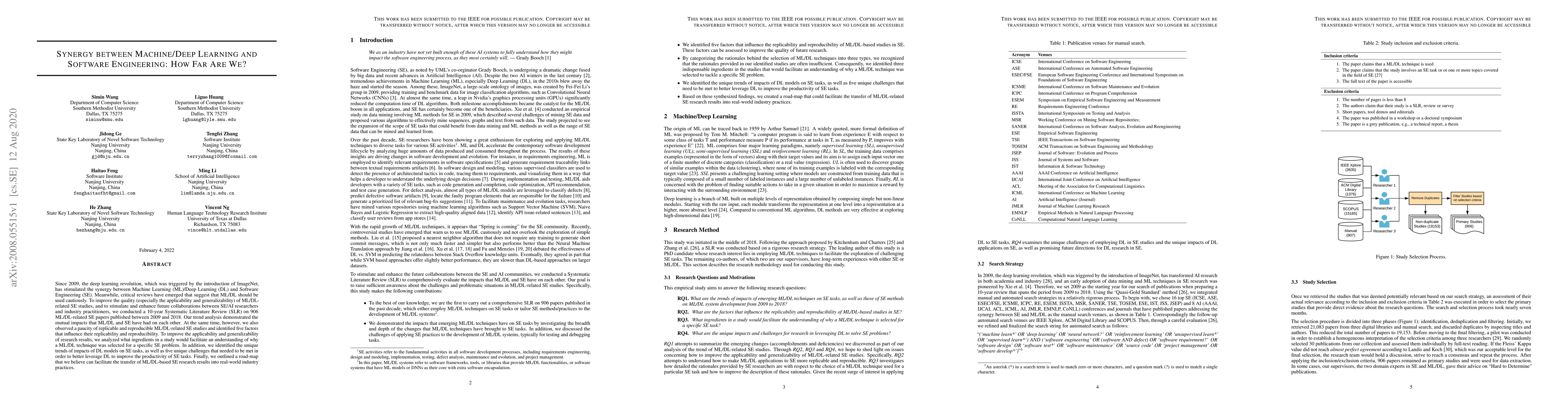 A 10-year systematic literature review of 906 machine learning/deep learning-related software engineering papers found that there is a synergy between the two fields, but also identified challenges to replicability and reproducibility and unique trends in their impacts on software tasks.