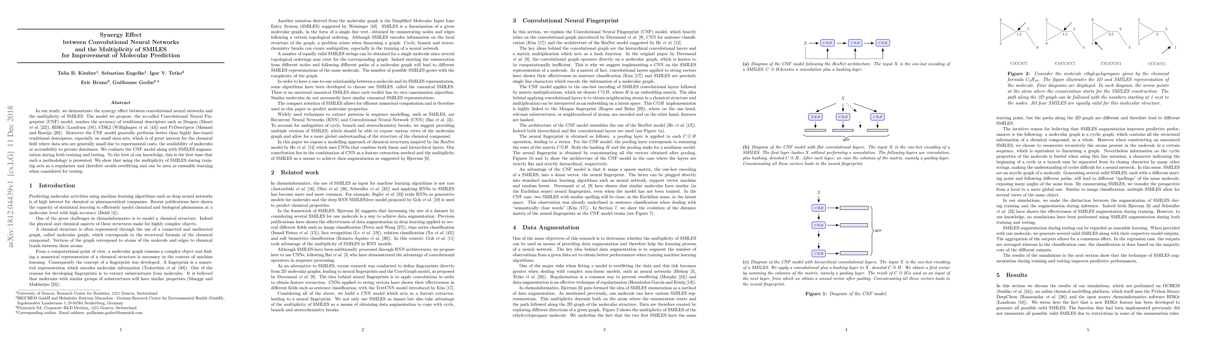 In our study, we demonstrate the synergy effect between convolutional neural networks and the multiplicity of SMILES. The model we propose, the so-called Convolutional Neural Fingerprint (CNF) model, reaches the accuracy of traditional descriptors such as Dragon (Mauri et al. [22]), RDKit (Landrum [18]), CDK2 (Willighagen et al. [43]) and PyDescriptor (Masand and Rastija [20]). Moreover the CNF model generally performs better than highly fine-tuned traditional descriptors, especially on small data sets, which is of great interest for the chemical field where data sets are generally small due to experimental costs, the availability of molecules or accessibility to private databases. We evaluate the CNF model along with SMILES augmentation during both training and testing. To the best of our knowledge, this is the first time that such a methodology is presented. We show that using the multiplicity of SMILES during training acts as a regulariser and therefore avoids overfitting and can be seen as ensemble learning when considered for testing.