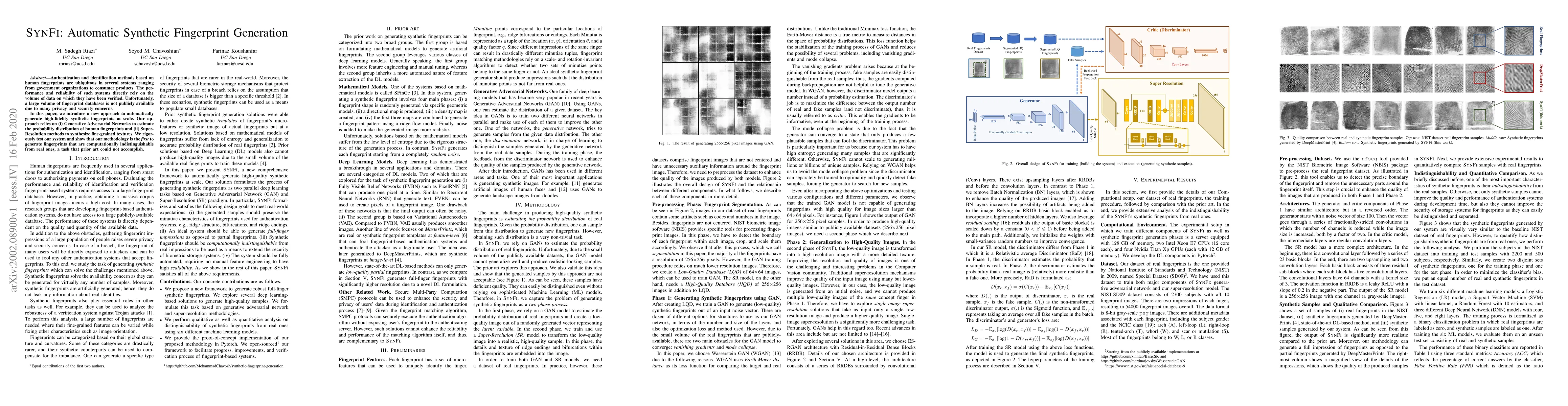 Authentication and identification methods based on human fingerprints are ubiquitous in several systems ranging from government organizations to consumer products. The performance and reliability of such systems directly rely on the volume of data on which they have been verified. Unfortunately, a large volume of fingerprint databases is not publicly available due to many privacy and security concerns. In this paper, we introduce a new approach to automatically generate high-fidelity synthetic fingerprints at scale. Our approach relies on (i) Generative Adversarial Networks to estimate the probability distribution of human fingerprints and (ii) Super-Resolution methods to synthesize fine-grained textures. We rigorously test our system and show that our methodology is the first to generate fingerprints that are computationally indistinguishable from real ones, a task that prior art could not accomplish.