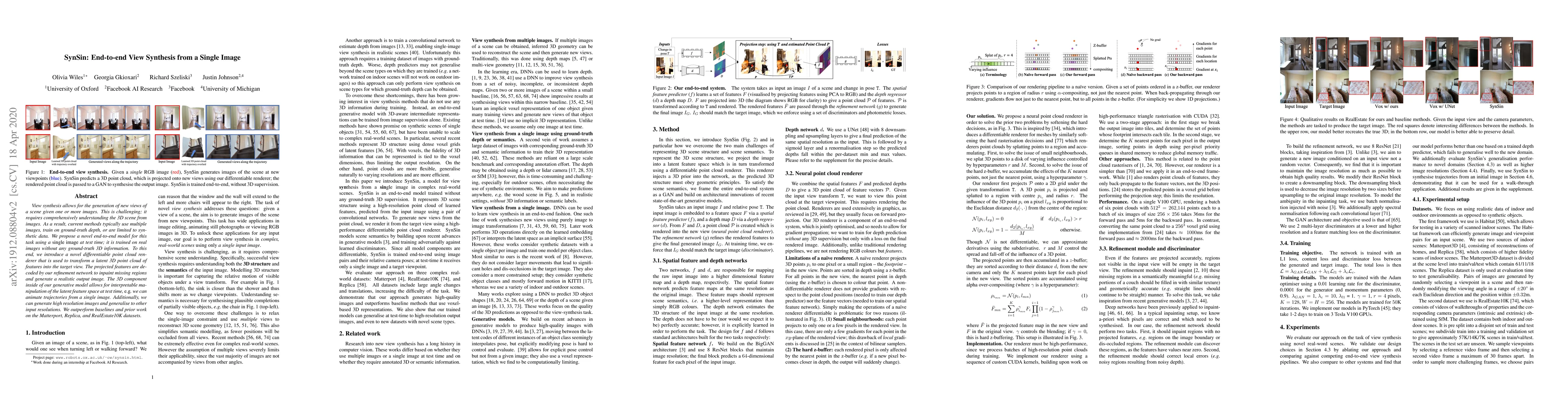 A new model allows for end-to-end view synthesis from a single image without ground-truth 3D information, generating realistic high-resolution images that can be manipulated at test time.