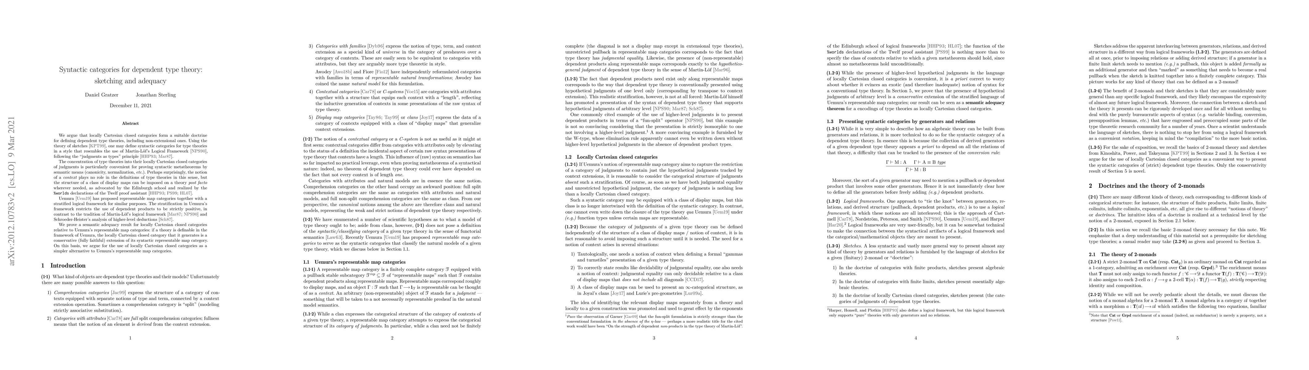 We argue that locally Cartesian closed categories form a suitable doctrine for defining dependent type theories, including non-extensional ones. Using the theory of sketches, one may define syntactic categories for type theories in a style that resembles the use of Martin-L\"of's Logical Framework, following the "judgments as types" principle. The concentration of type theories into their locally Cartesian closed categories of judgments is particularly convenient for proving syntactic metatheorems by semantic means (canonicity, normalization, etc.). Perhaps surprisingly, the notion of a context plays no role in the definitions of type theories in this sense, but the structure of a class of display maps can be imposed on a theory post facto wherever needed, as advocated by the Edinburgh school and realized by the %worlds declarations of the Twelf proof assistant. Uemura has proposed representable map categories together with a stratified logical framework for similar purposes. The stratification in Uemura's framework restricts the use of dependent products to be strictly positive, in contrast to the tradition of Martin-L\"of's logical framework and Schroeder-Heister's analysis of higher-level deductions. We prove a semantic adequacy result for locally Cartesian closed categories relative to Uemura's representable map categories: if a theory is definable in the framework of Uemura, the locally Cartesian closed category that it generates is a conservative (fully faithful) extension of its syntactic representable map category. On this basis, we argue for the use of locally Cartesian closed categories as a simpler alternative to Uemura's representable map categories.