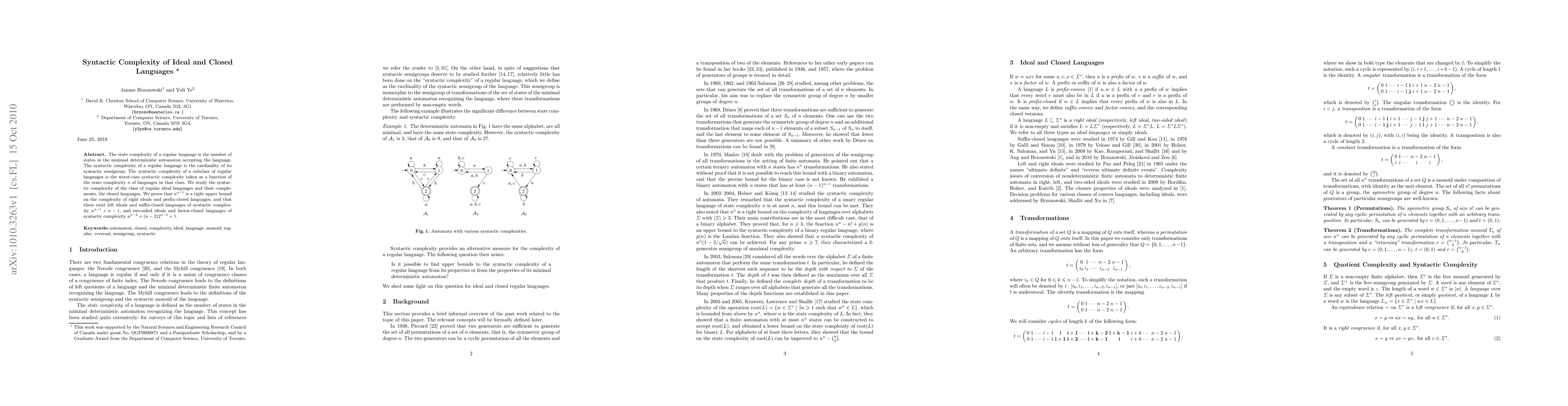The paper investigates the syntactic complexity of regular ideal and closed languages, establishing tight upper bounds and complexities for different types of these languages as functions of their state complexity. The results include $n^{n-1}$ for right ideals and prefix-closed languages, and more complex expressions for left, two-sided, and factor-closed languages.