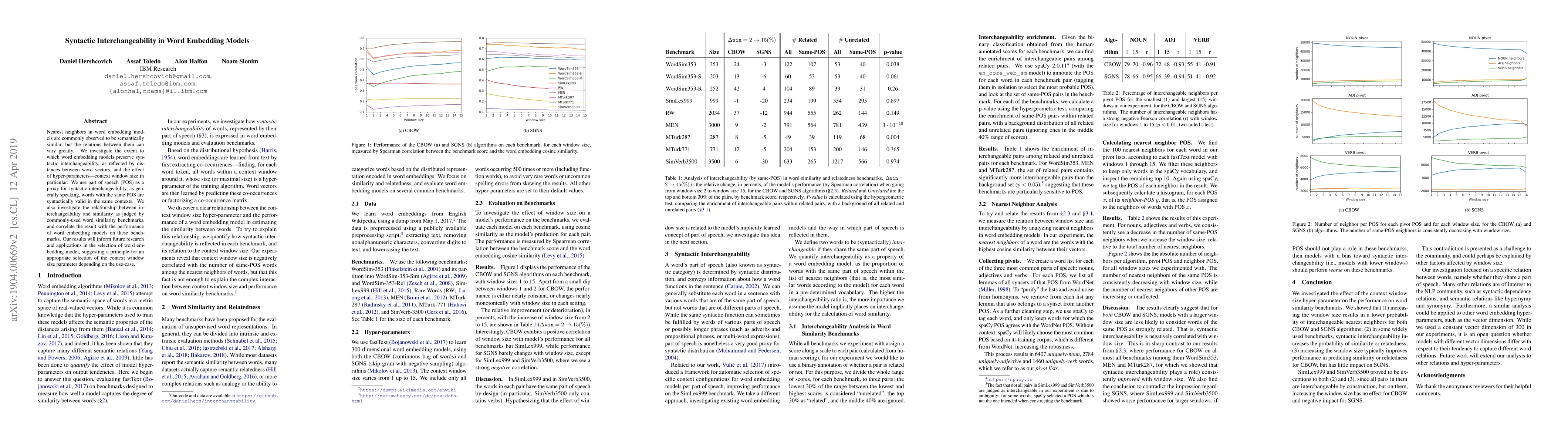 This paper examines how well word embedding models capture syntactic interchangeability, using part of speech as a proxy, and analyzes the impact of hyper-parameters like context window size on this ability. It correlates these findings with performance on word similarity benchmarks to guide the selection of word embedding models for different applications.