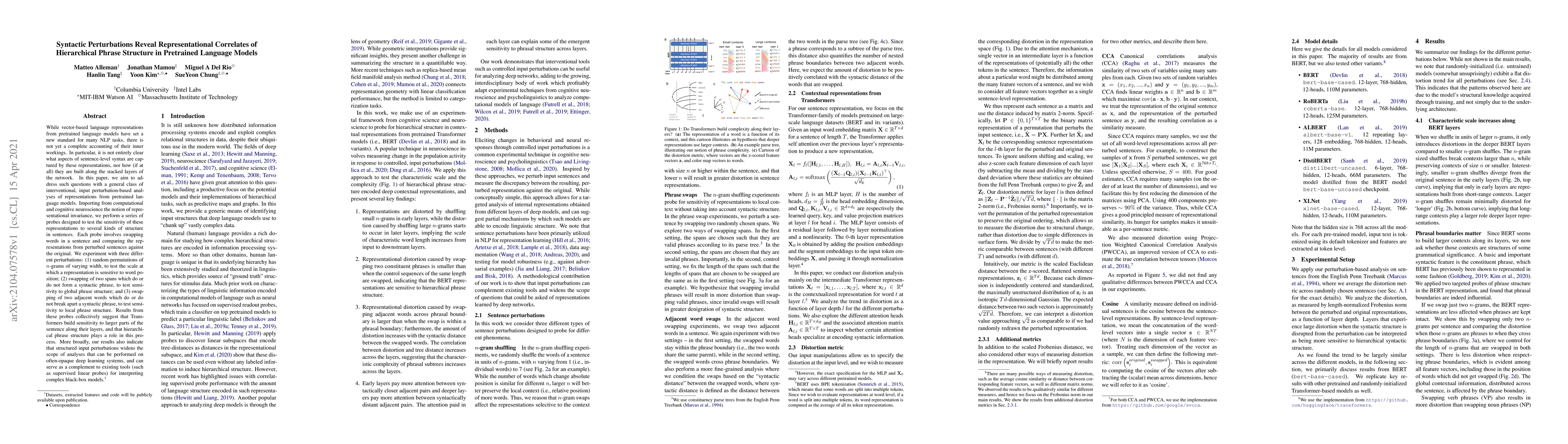 This paper explores how pretrained language models capture hierarchical phrase structures through syntactic perturbations. Experiments reveal that Transformers develop sensitivity to larger syntactic units across layers, indicating that hierarchical phrase structure influences this process.